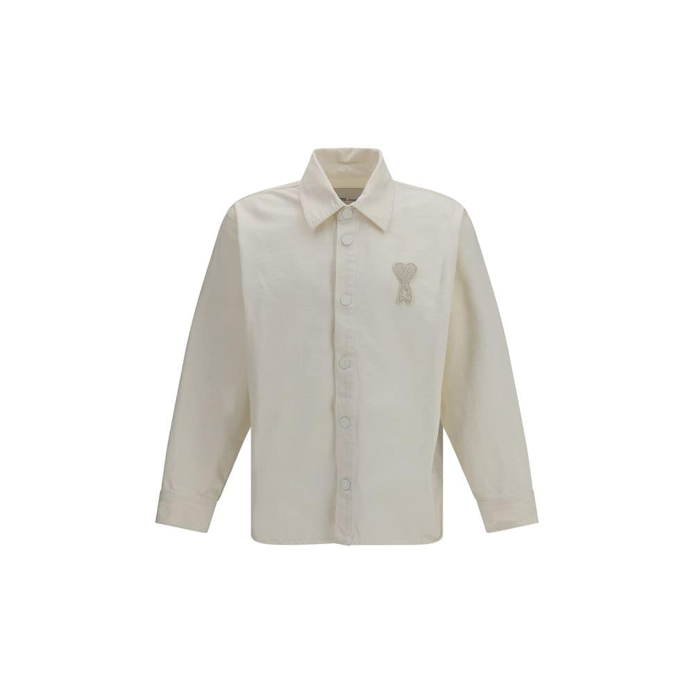 The Ami de Coeur denim Jacket by Ami Paris combines casual style with distinctive details. Crafted from denim, it features white denim-style snap buttons and tone-on-tone stitching that enhance its design. The off-white crocheted Ami de Coeur appliqué stands out on the chest, an iconic element that elegantly defines the piece.