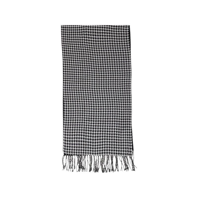The Antony Morato JAQUADR DOUBLE FACE men’s scarf, made from 100% acrylic, is a versatile and stylish accessory perfect for the winter season. Its double-sided design offers two different looks: one side features an elegant houndstooth pattern, while the other is solid, making it easy to match with both casual and formal outfits. Delicate fringes at the ends add a refined touch, and the soft fabric ensures comfort and warmth on colder days. The subtle logo tag enhances the product’s value and brand recognition. An ideal gift or the perfect addition to complete your outfit with style.