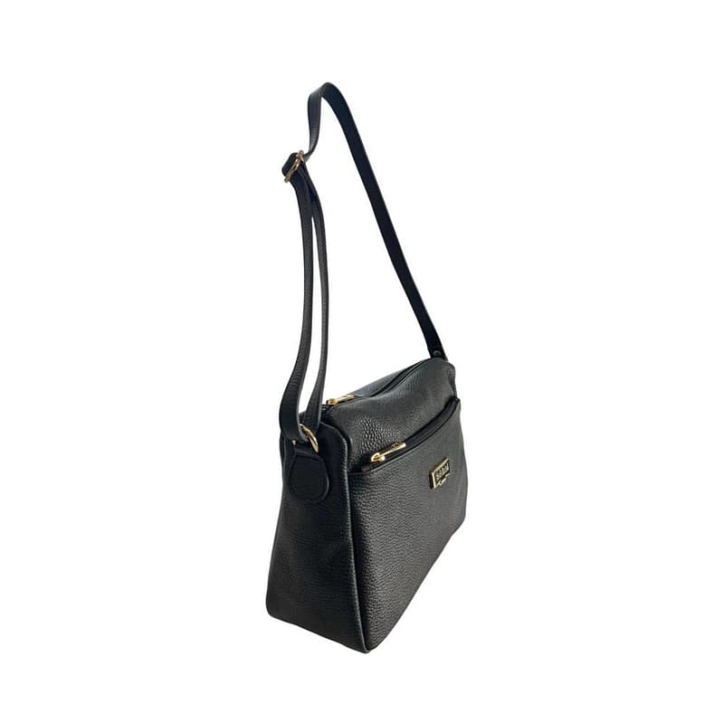 Bag With Adjustable Shoulder Strap. Zip Closure. Internal Compartments. Front Pocket. Gold Metallic Details. Front Logo. 29x22x11 Cm