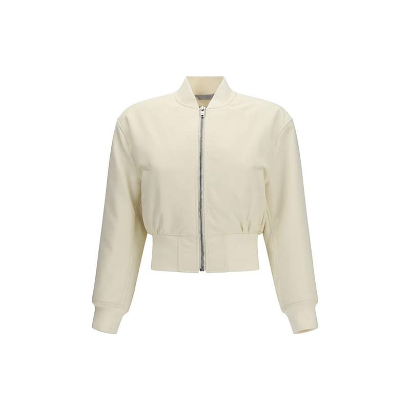 The cropped Bomber Jacket by Balenciaga in technical faille stands out for a contemporary and feminine silhouette. The bomber model features rounded sleeves that define the garment’s volume, while the front zip closure adds practicality. Two front slash pockets introduce a functional detail. Ribbed trims and the high gathered waistband enhance the silhouette. The cropped technical faille bomber jacket completes the design with a modern and distinctive style.