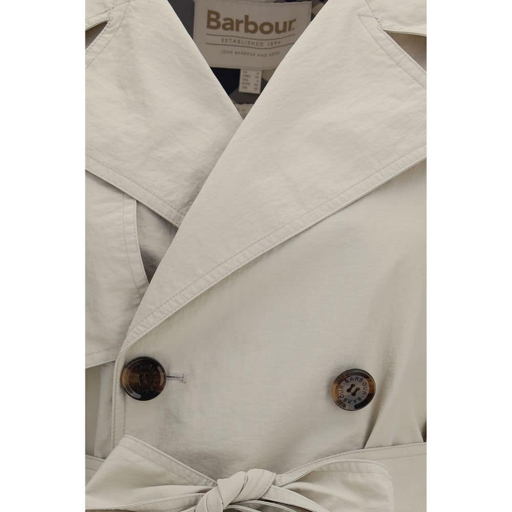 The Layla rain Trench by Barbour stands out for a light and refined silhouette that elegantly interprets the classic trench style. The trench model by Barbour features a double-breasted construction and a tie belt at the waist that naturally defines the silhouette. Crafted from lightweight crinkled fabric, it is unlined to ensure a comfortable and relaxed fit. The partial rear tartan lining and contrasting inner trims recall the brand’s heritage. The front button fastening, side welt pockets, central back slit and buttoned cuffs complete the Layla trench by Barbour with a sober and contemporary style, while the embroidered logo on the left pocket adds a distinctive detail.