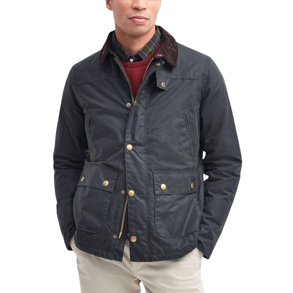 The Barbour Reelin Wax Jacket MWX1106 for men is a timeless style icon, perfect for those seeking a sophisticated yet functional look. Crafted from 100% waxed cotton, this jacket provides excellent protection against wind and rain while ensuring optimal breathability. The design features a corduroy collar for an elegant touch, a front closure with zip and snap buttons, and practical front flap pockets with metallic buttons. Ideal for transitional seasons and cooler days, the Barbour jacket stands out for its high-quality materials and meticulously crafted details.