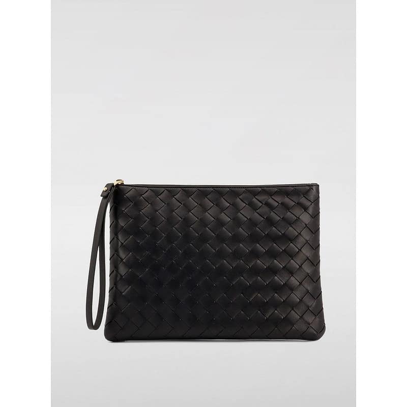 Crafted from woven leather, Features a secure zip closure, Includes a convenient wristlet strap, Versatile for various essentials