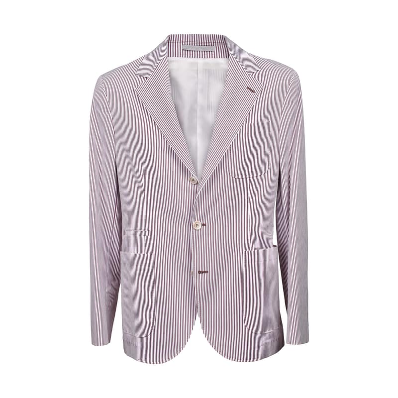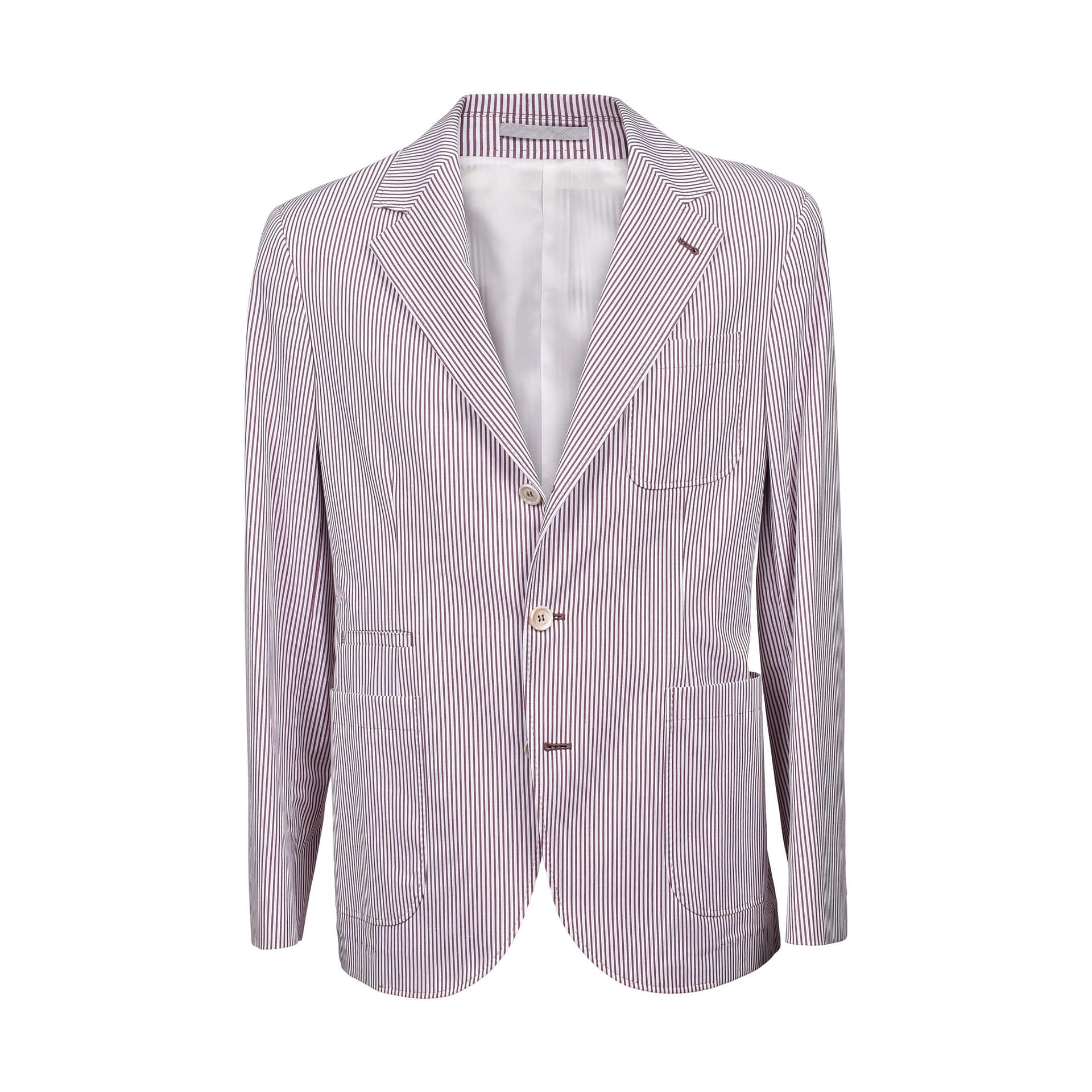 Elevate your wardrobe with the unparalleled sophistication of BRUNELLO CUCINELLI. This men’s deconstructed jacket, woven with care in Italy, merges comfort with high-end style, featuring a striking burgundy and white color scheme. Its luxurious blend of cotton and elastane ensures both a perfect fit and enduring quality. New with tags, this piece is a testament to impeccable craftsmanship and contemporary elegance — a true collector’s item for the fashion-forward gentleman.
