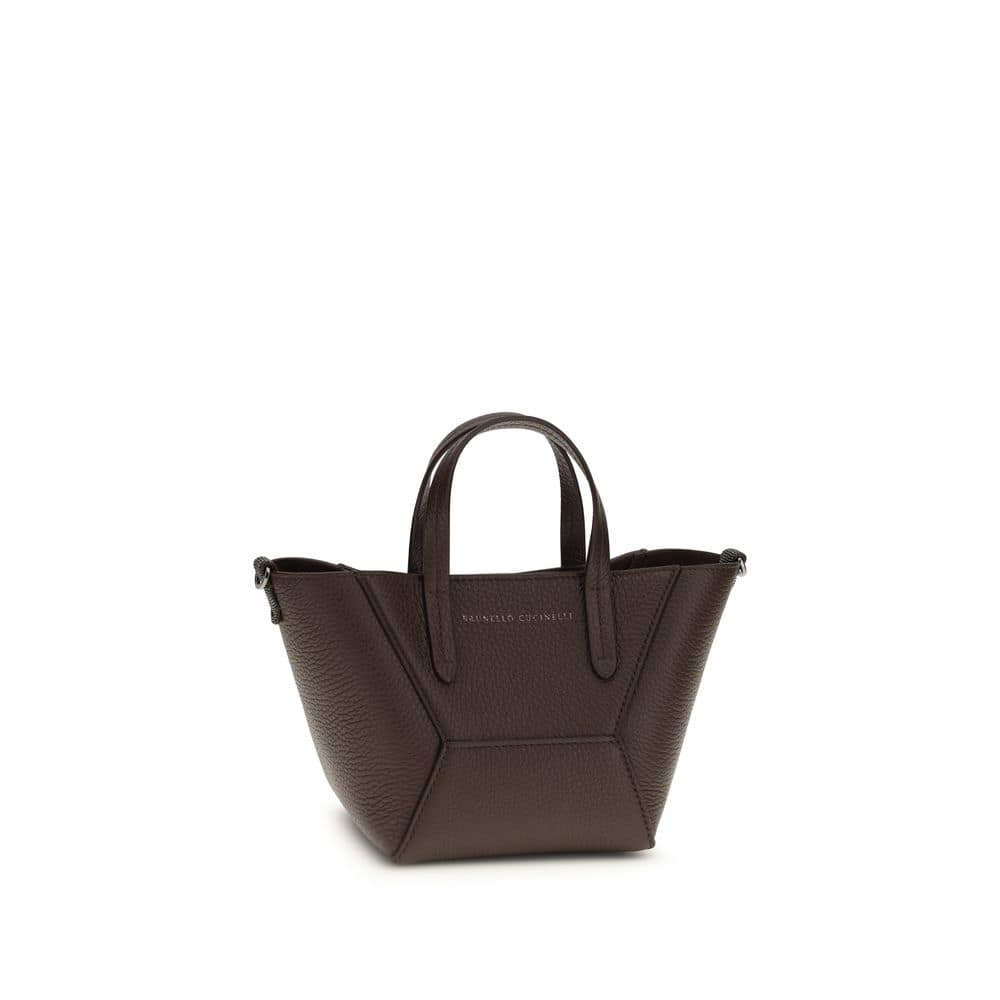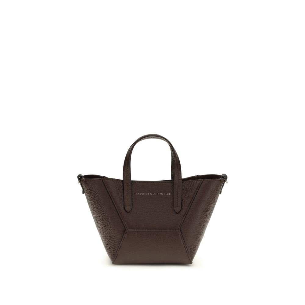 The leather Handbag by Brunello Cucinelli combines craftsmanship and refinement. Featuring two top handles and an adjustable and removable flat shoulder strap, it offers versatility and comfort. The paneled design enhances the elegant structure, while the iconic monogram on the front panel adds a distinctive touch. The internal magnetic button closure and removable shoulder strap ensure practicality. The single internal compartment provides space and functionality, perfect for discreet and timeless elegance.
