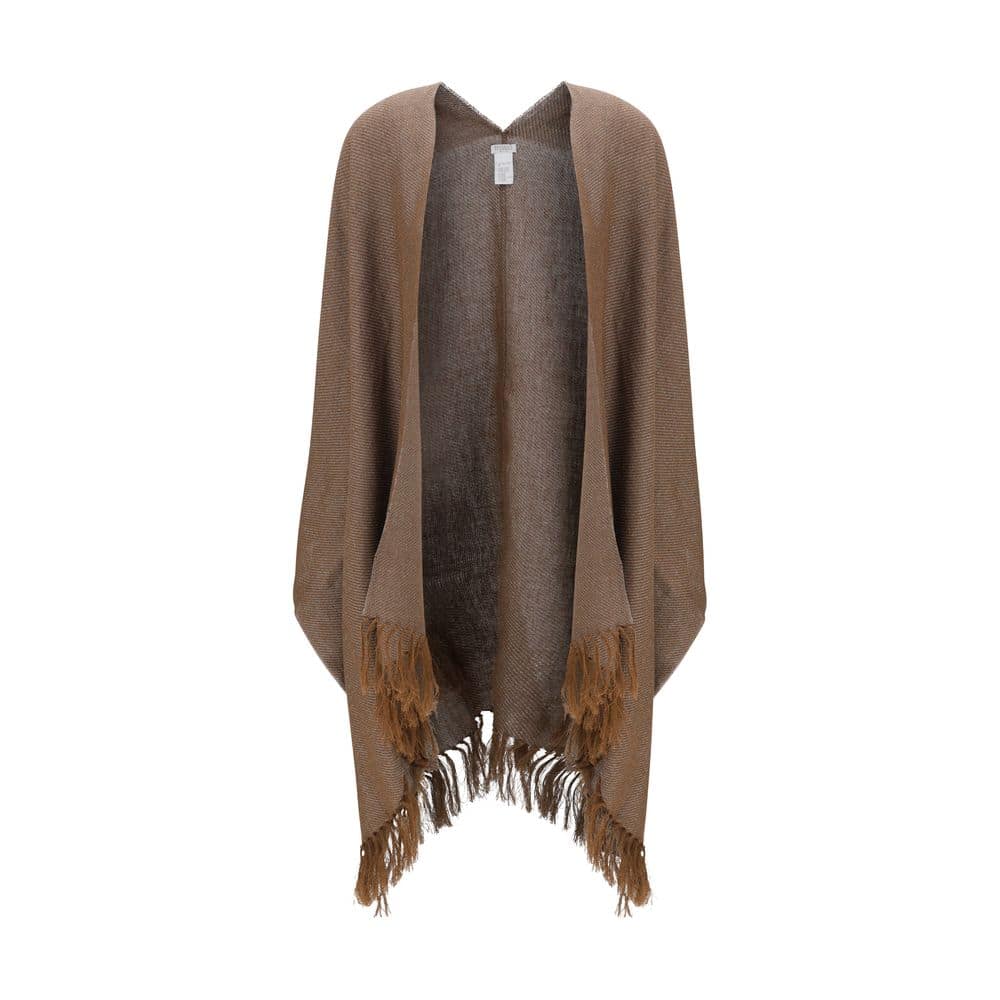 The open Poncho by Brunello Cucinelli is an elegant and sophisticated garment, made of linen for a fresh and lightweight feel. The fabric, enriched with metallic thread, adds a touch of subtle shine and a unique visual effect. The fringes on the sides add movement, while the open design allows it to be worn with versatility, over a casual or elegant outfit. Perfect for milder seasons, this poncho represents the perfect combination of comfort and luxury, typical of Brunello Cucinelli’s refined style.