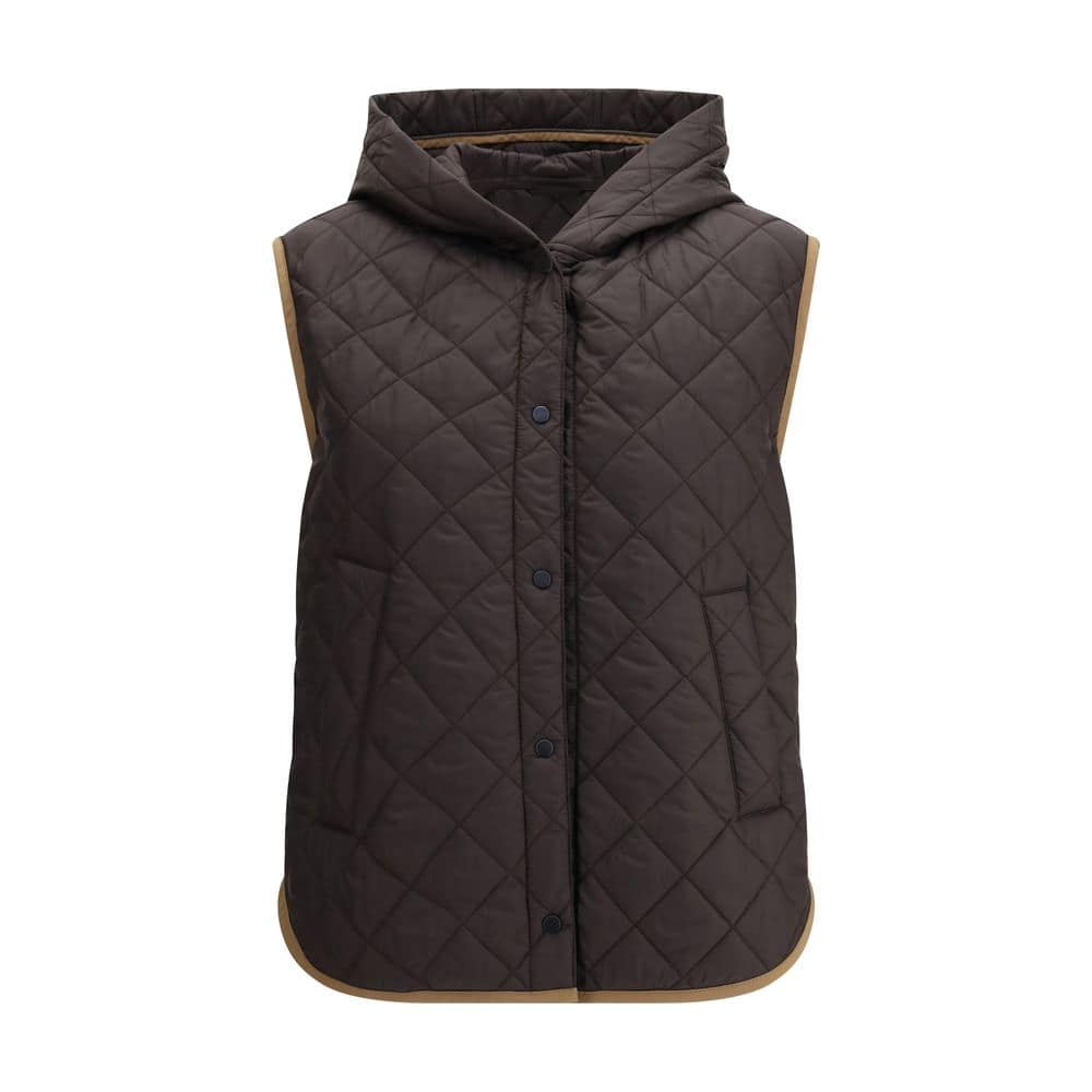 The hooded padded Gilet by Brunello Cucinelli blends functional warmth with the brand’s refined aesthetic. Its quilted construction offers lightweight protection, while the hood adds a practical layer for unpredictable days. Contrast-trimmed front pockets introduce a subtle graphic detail, and the snap button closure keeps the silhouette clean and effortless. A versatile piece designed for elevated everyday wear.