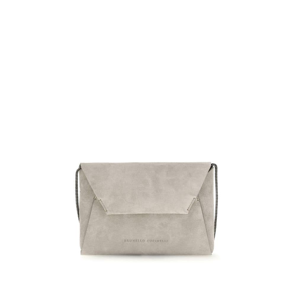 The BC Duo suede Clutch Bag by Brunello Cucinelli combines elegance and functionality. Featuring a magnetic closure, shoulder strap, and leather lining, it has a slot for cards and business cards. Completed by nickel-free metal detailing, it is a refined and practical accessory for any occasion.