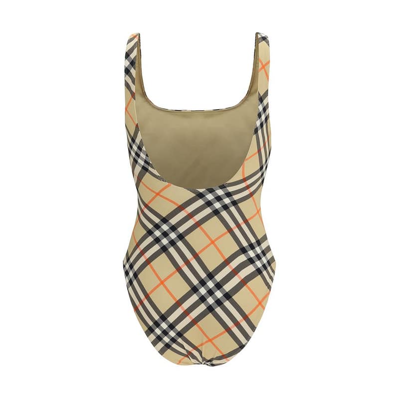 The Check Swimsuit by Burberry stands out for an essential silhouette that interprets beachwear with contemporary elegance. The swimsuit model by Burberry is crafted from stretch nylon and features a square neckline and scoop back that define the silhouette. The Burberry Check pattern enriches the design with an iconic and distinctive detail. The piece is completed with a matching drawstring bag for added practicality. The Burberry swimsuit combines functionality and style in a refined design.