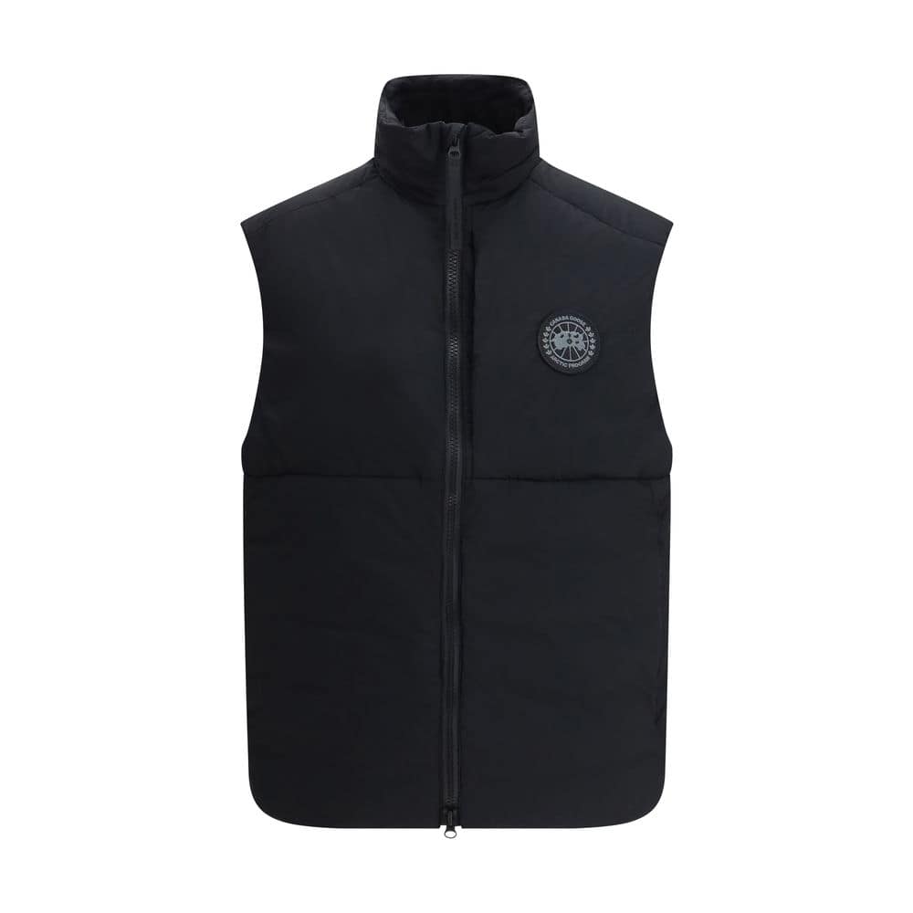 The Lodge Vest by Canada Goose is warm, wind-resistant and fully packable, designed for outdoor activities and lightweight travel. Crafted from ultra-lightweight ripstop fabric with a matte finish, it is water-repellent and built to provide protection without bulk. Featuring a two-way front zipper, it ensures practicality and ease of movement. The vest packs into its own chest pocket and converts into a convenient carry bag with a transport strap. An internal adjustable drawcord at the hem allows for a customized fit and improved heat retention, while two exterior zip pockets provide secure storage.