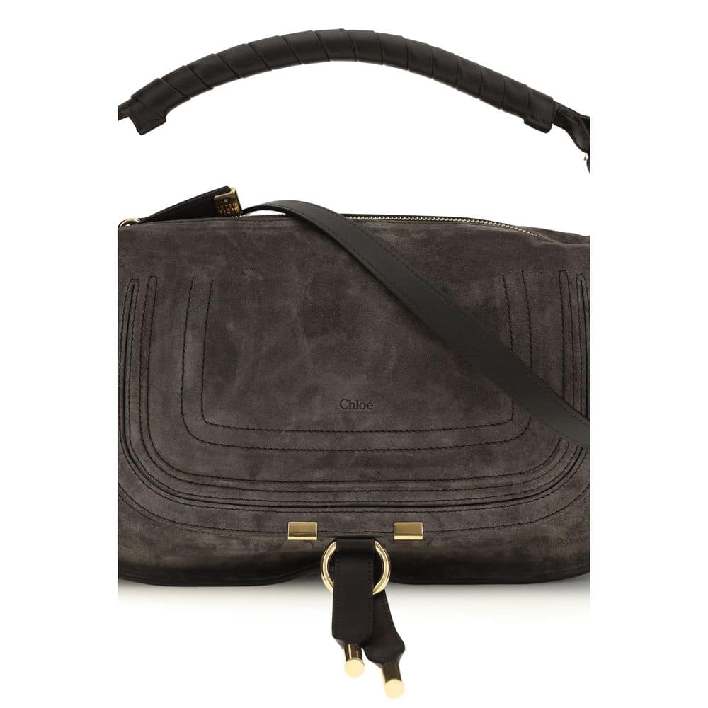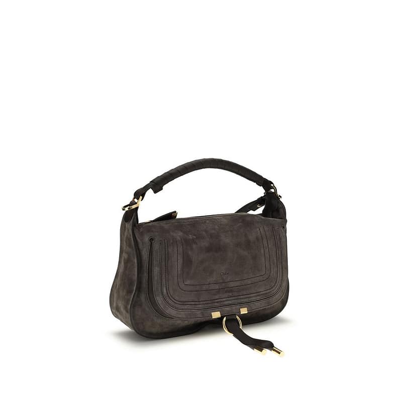 The small Marcie Shoulder Bag by ChloƩ combines elegance and practicality in a compact and versatile format. It can be carried by hand, on the shoulder, or across the body thanks to the adjustable and removable leather shoulder strap. The interior offers a functional main compartment, flanked by an open front pocket hidden by the flap and a flat interior pocket. The zip closure ensures security, completing an iconic and refined accessory.