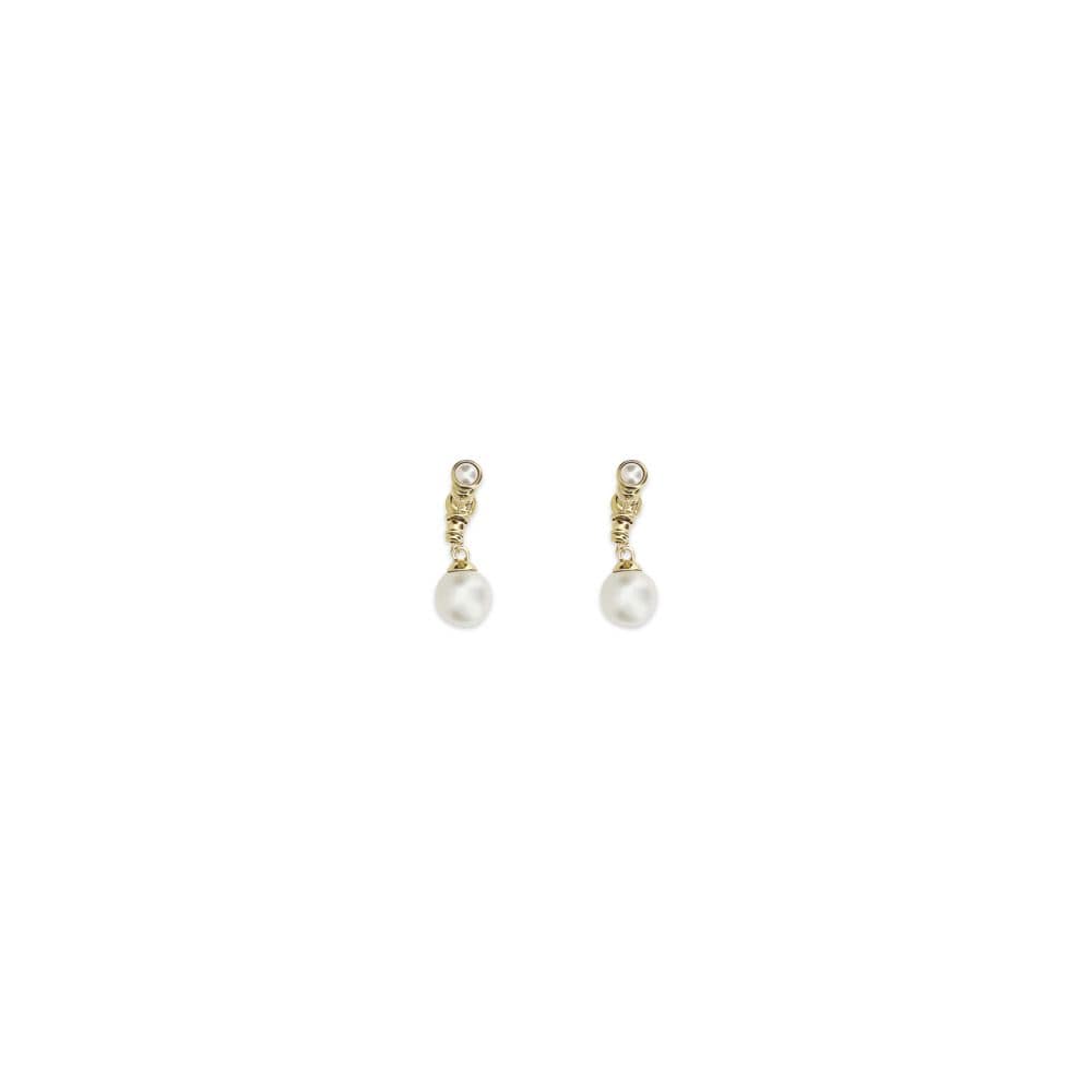 The Heirloom drop Earrings by ChloĆ© are a refined gold-tone brass accessory, featuring a T-bar detail from which a resin pearl with a cursive āCā motif hangs. The engraved ChloĆ© logo completes the design with an elegant touch.