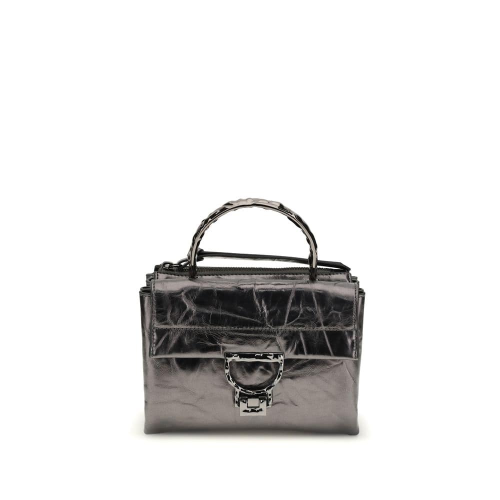 The Arlettis Droplet Handbag by Coccinelle, made of smooth laminated leather, offers hand and shoulder carryability thanks to its droplet-effect metal handle and adjustable, removable leather shoulder strap. The model features a flap closure, exterior zipper pocket and two interior compartments, combining elegance and functionality in a versatile and refined design.