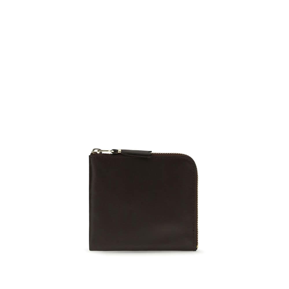 The leather Wallet by Comme des Garçons combines elegance and practicality in a refined design. Featuring a side zip closure extending to the top, it includes an internal compartment and a gold-embossed logo on the front, adding a distinctive touch of luxury. Perfect for stylishly organizing your essentials.