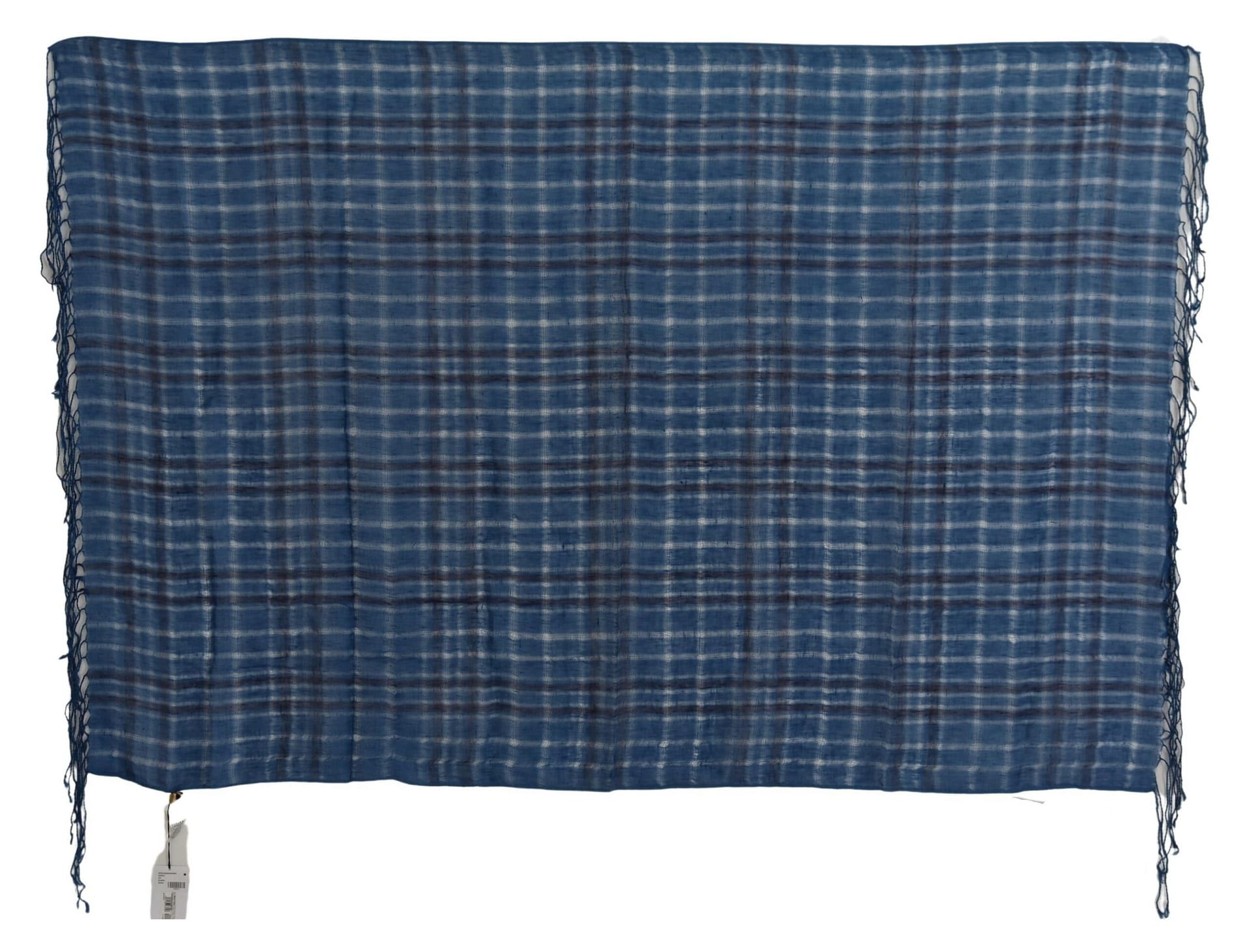 GF Ferre Dark Blue Wool Neck Wrap Shawl Fringes Scarf