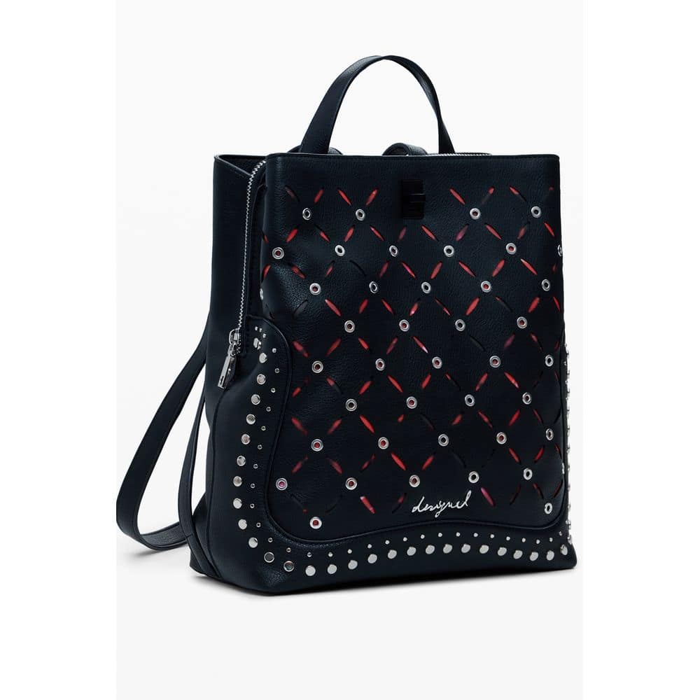 Unleash your edgy side with the DESIGUAL Yankee Metal Pactch Sumy Mini Backpack. This compact sensation is not just an accessory; it’s a statement. With one handle, adjustable shoulder straps, and a secure zip closure complemented by a snap and turnbuckle, your essentials stay safe and stylish. Studded accents and contrasting details make this piece a defiant nod to the bold at heart. Organize effortlessly with three compartments and an internal pocket, plus an extra external pocket for anything you need on the go.