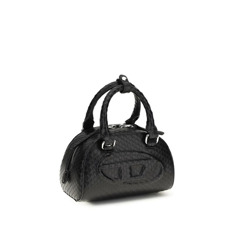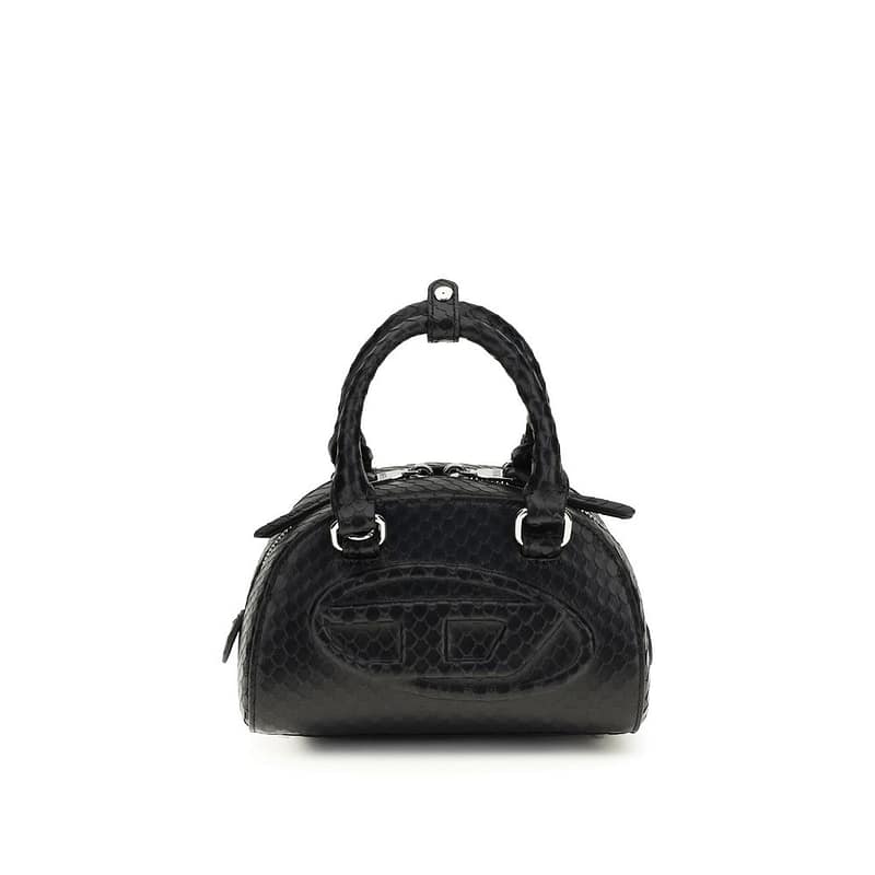 The 1DR Dome Handbag by Diesel exudes a modern and bold aesthetic, perfect for completing contemporary looks. Tubular handles with snap closures define the structured silhouette, while the adjustable and removable leather and chain shoulder strap offers versatile wearability. The two-way zip closure ensures practicality and security, complemented by an internal zip pocket to organize essentials.