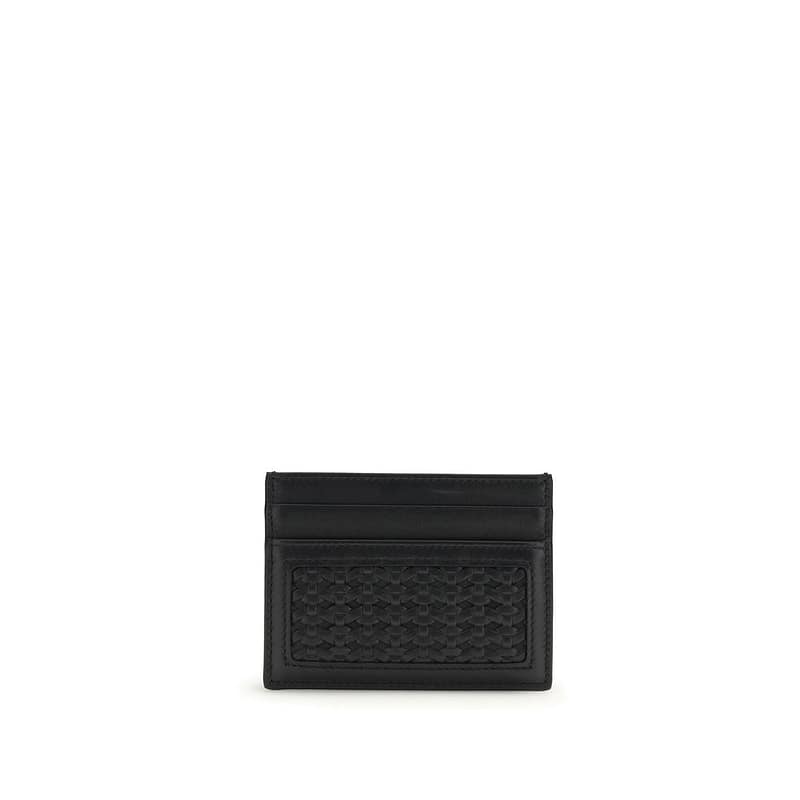 The calfskin plongé Cardholder with woven detail by Dolce&Gabbana is a sophisticated and refined accessory, characterized by its woven finish that gives it an elegant and distinctive look. The viscose lining adds a touch of luxury, while the external foil stamp and internal logo label enhance the authenticity and prestige of the brand. Perfect for those looking for a high-quality card holder that combines aesthetics and functionality in a compact and chic design.