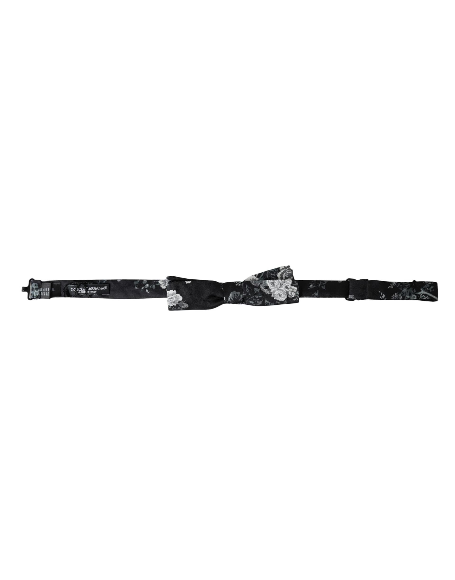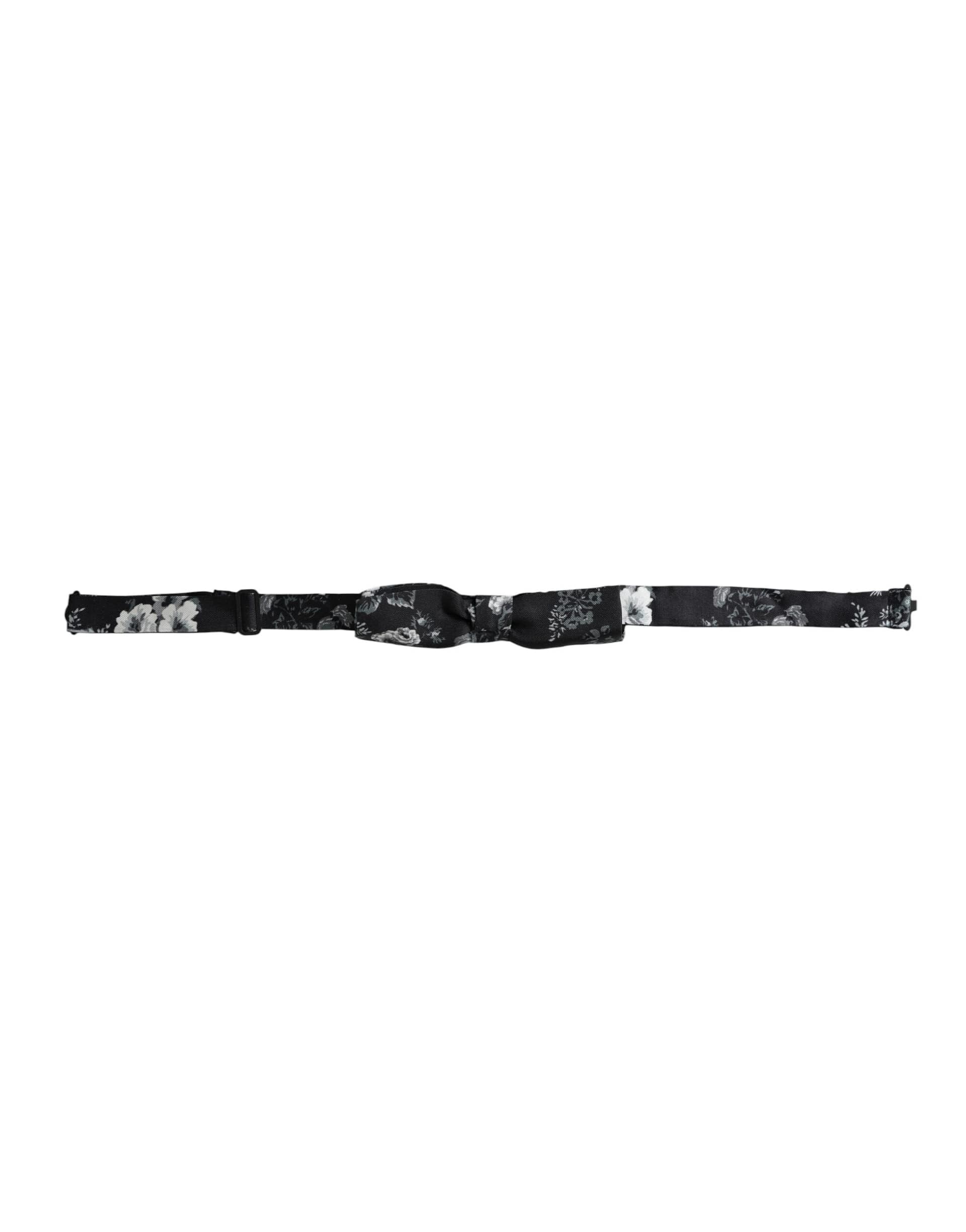 Dolce & Gabbana Black Floral Silk Adjustable Neck Men Bow Tie