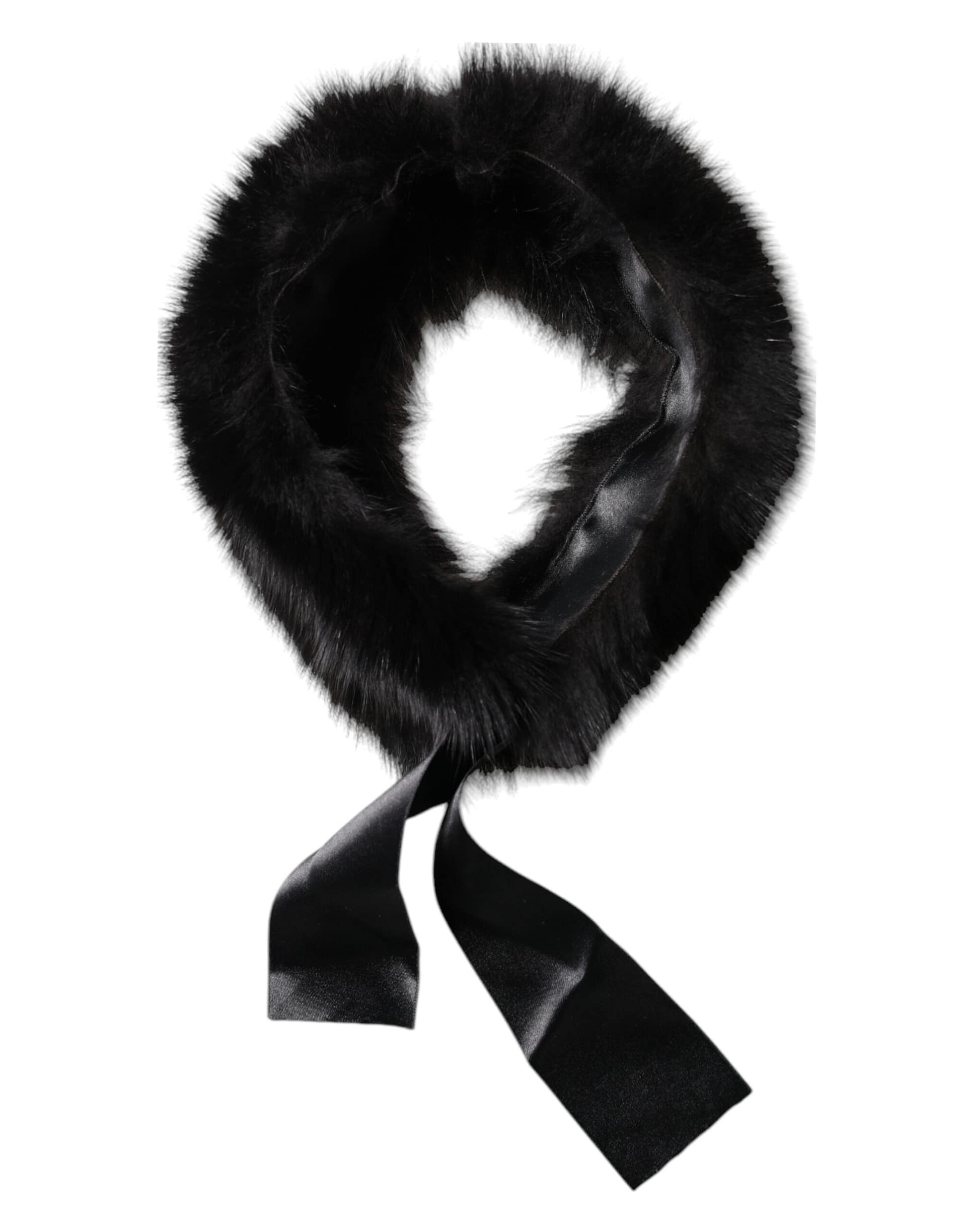 Dolce & Gabbana Black Lamb Fur Collar Women Neck Wrap Scarf