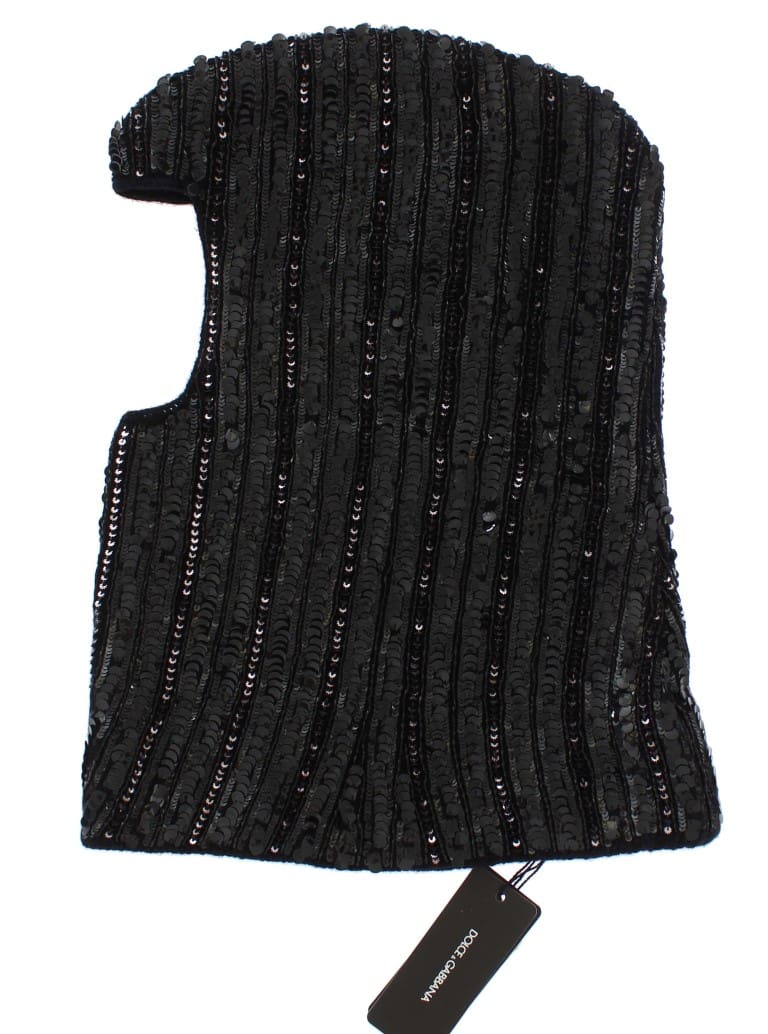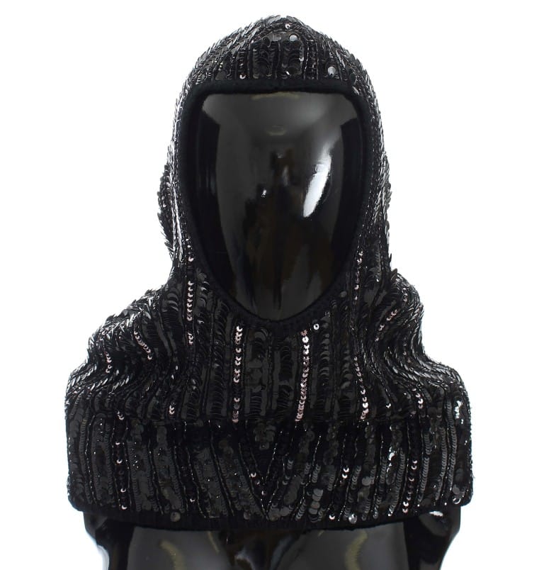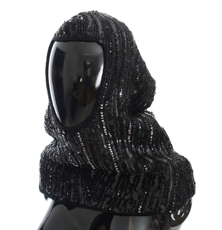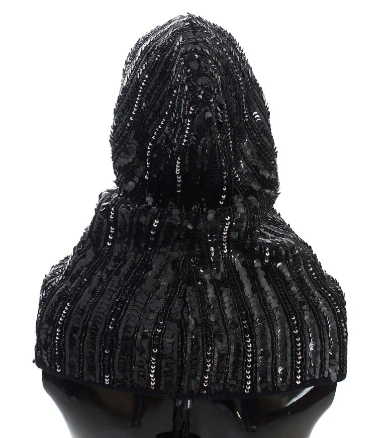 Dolce & Gabbana Black Knitted Sequin Hood Scarf Hat