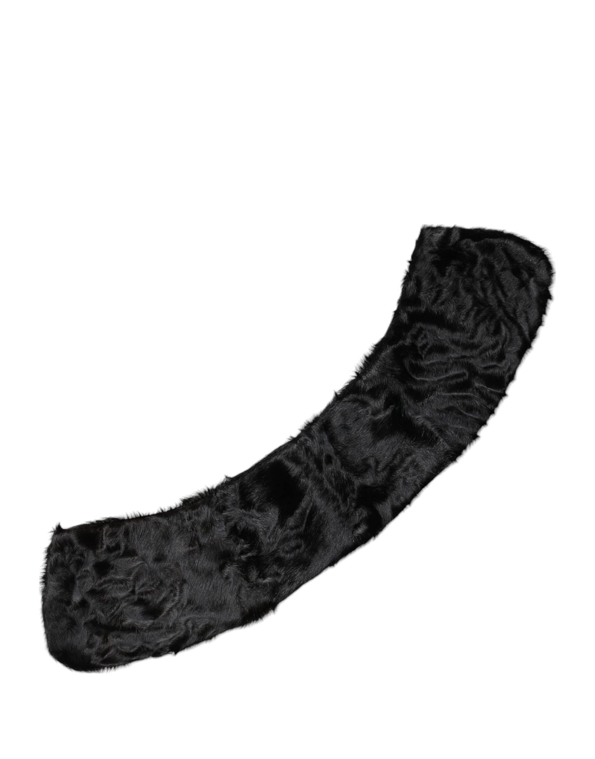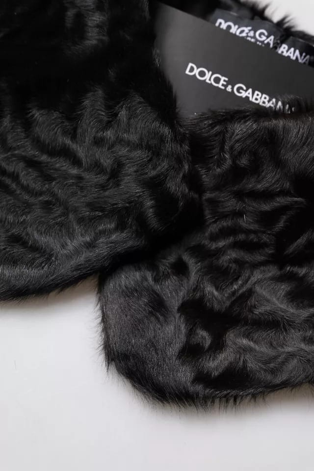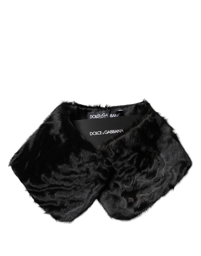 Dolce & Gabbana Black Lamb Fur Collar Women Neck Wrap Scarf