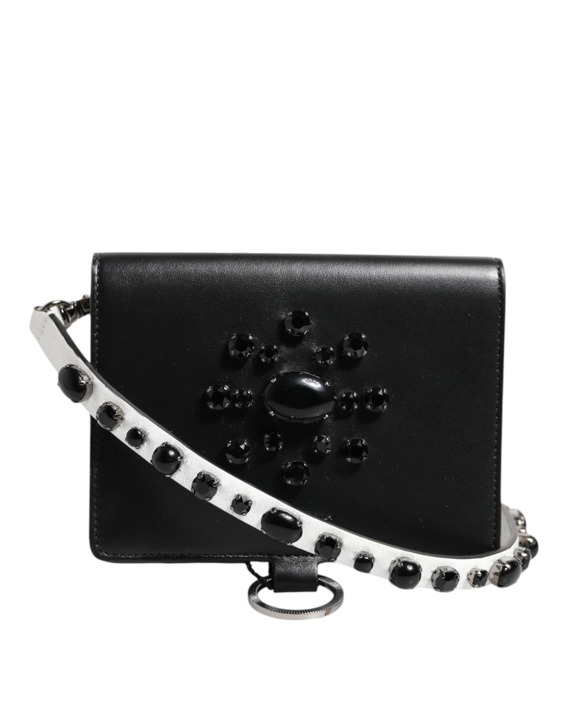 Gorgeous brand new with tags, 100% Authentic Dolce & Gabbana calf leather cardholder featuring crystal embellishment, snap-button fastening, internal card slots and detachable neck strap.