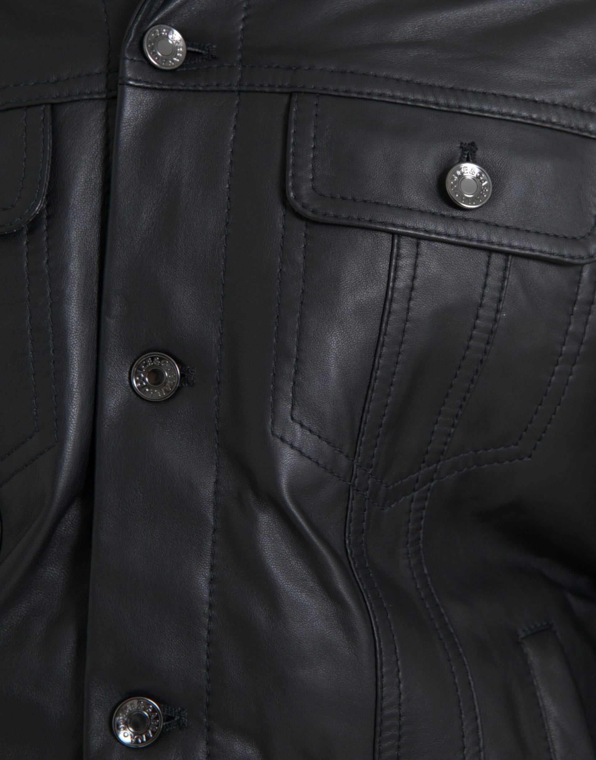 Dolce & Gabbana Black Leather Fur Collar Biker Coat Jacket