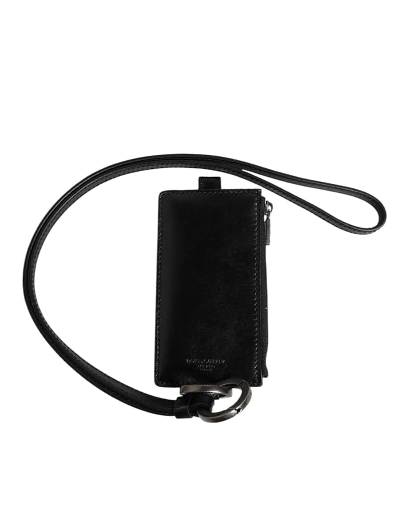 Absolutely stunning, 100% Authentic brand new Dolce & Gabbana black leather lanyard cardholder featuring logo-embossed patch to the rear, lanyard strap, side zip fastening, card slots and ring fastening.