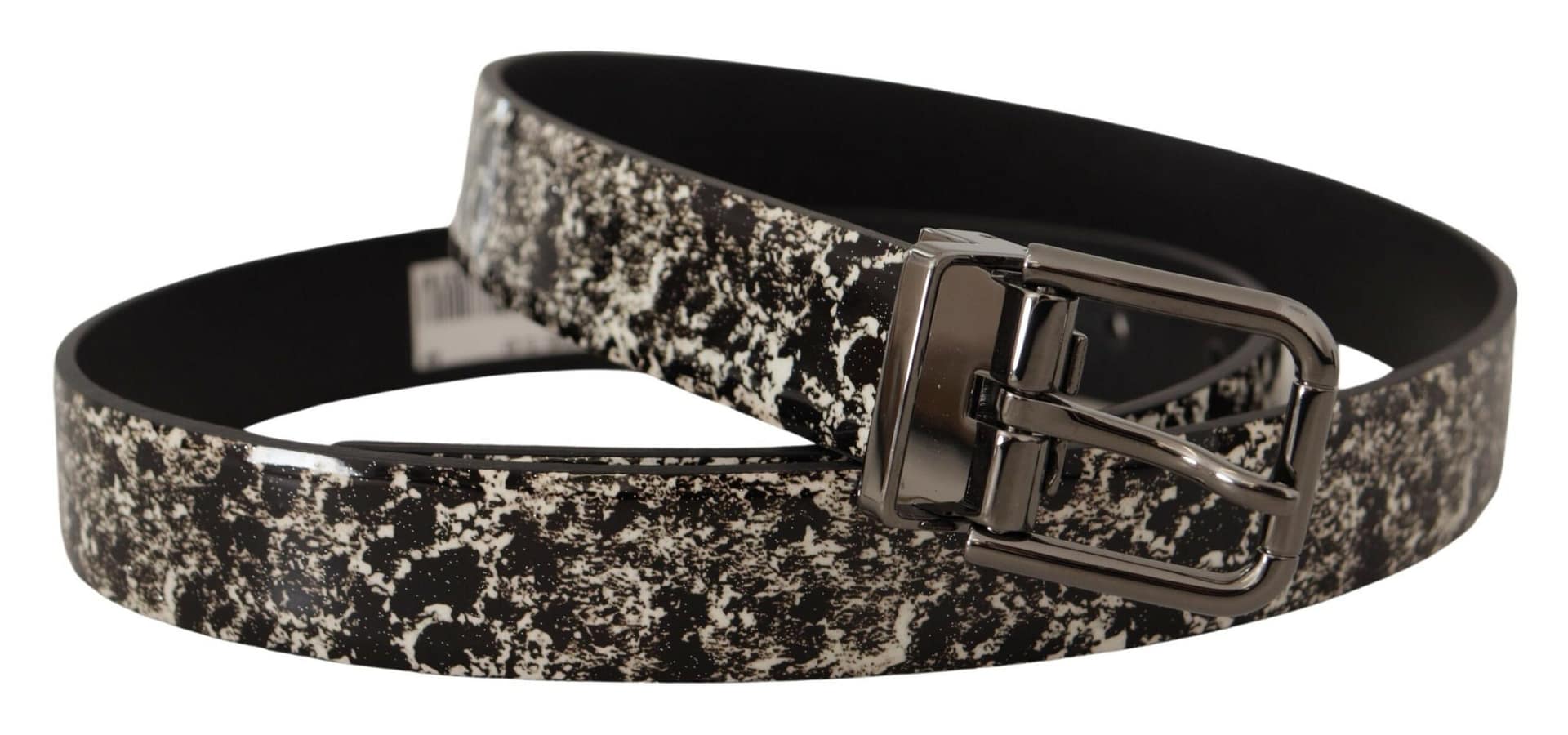high-quality marble print leather featuring a silver tone buckle closure. A unique eye-catching belt full of character.