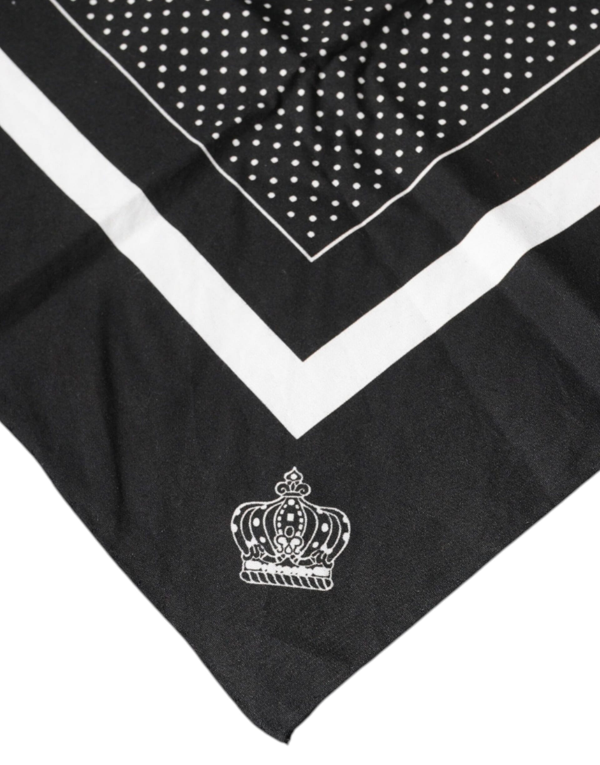 Dolce & Gabbana Black White Polka Dotted Silk Skinny Fringes Scarf