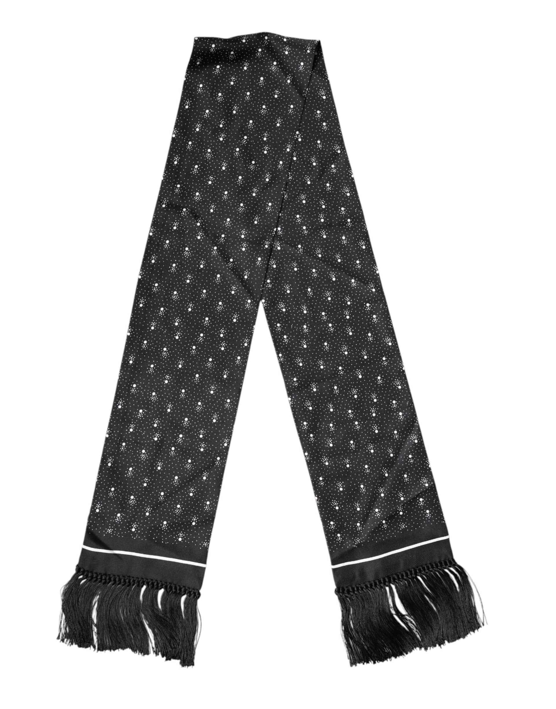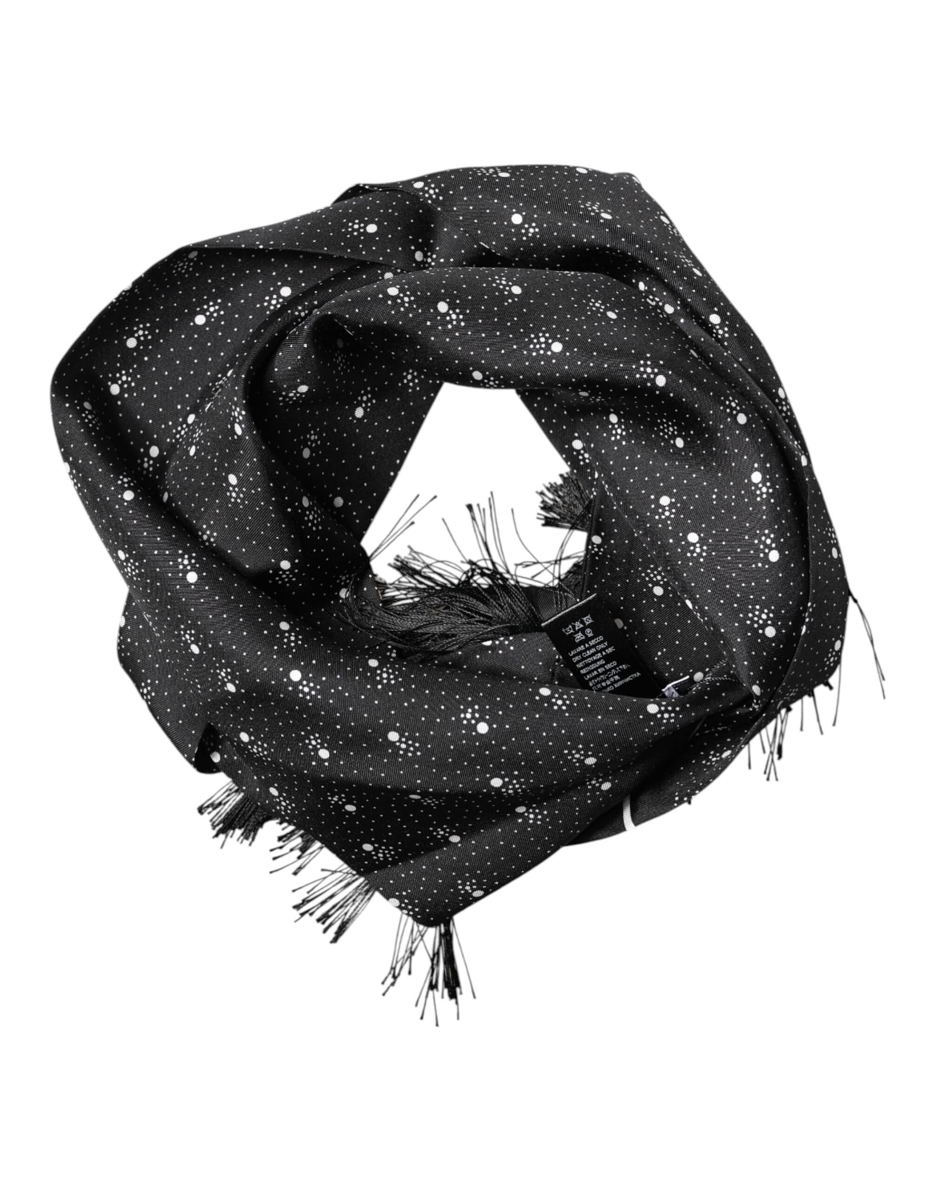 black silk scarf featuring a subtle dotted pattern. Crafted from smooth, luxurious silk, it drapes effortlessly as a men’s neck wrap or shawl. Perfect for elevating formal ensembles or adding a sophisticated accent to everyday outfits with timeless Italian style.