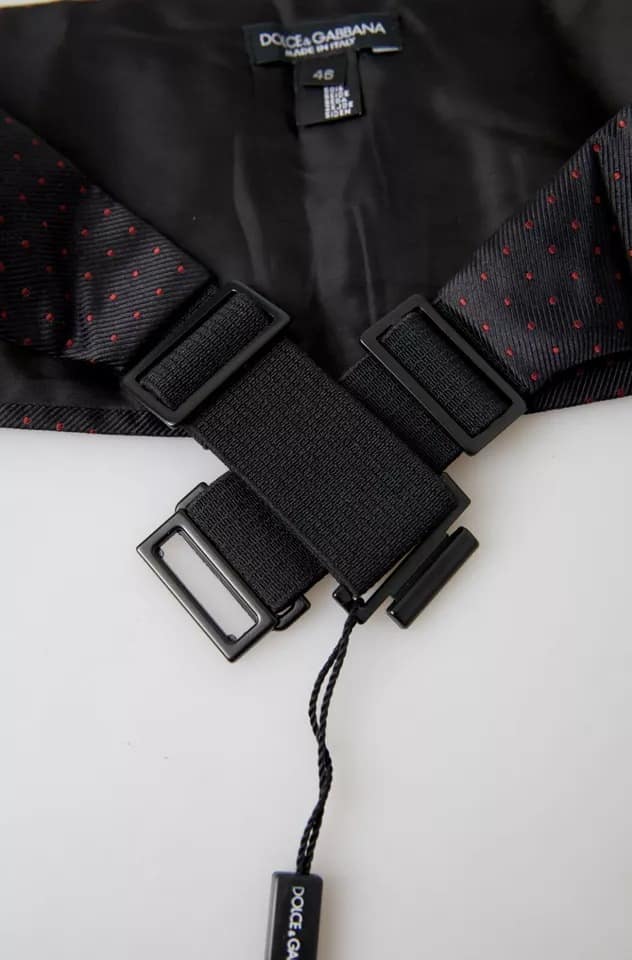 Dolce & Gabbana Black Silk Dotted Waist Tuxedo Belt Cummerbund