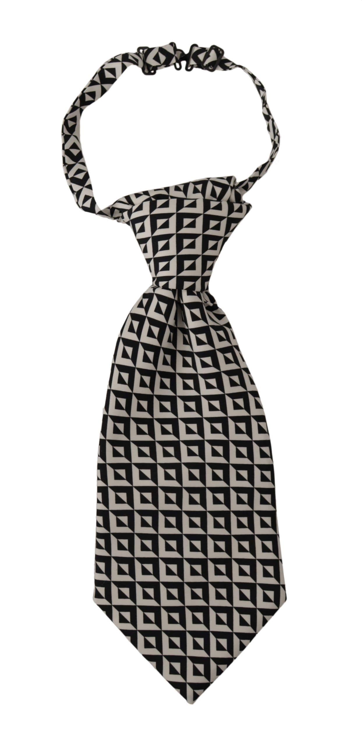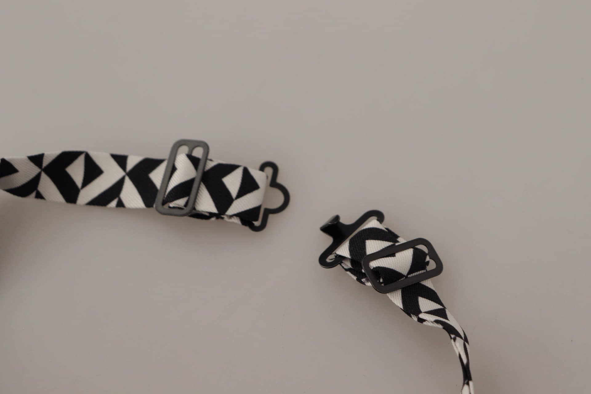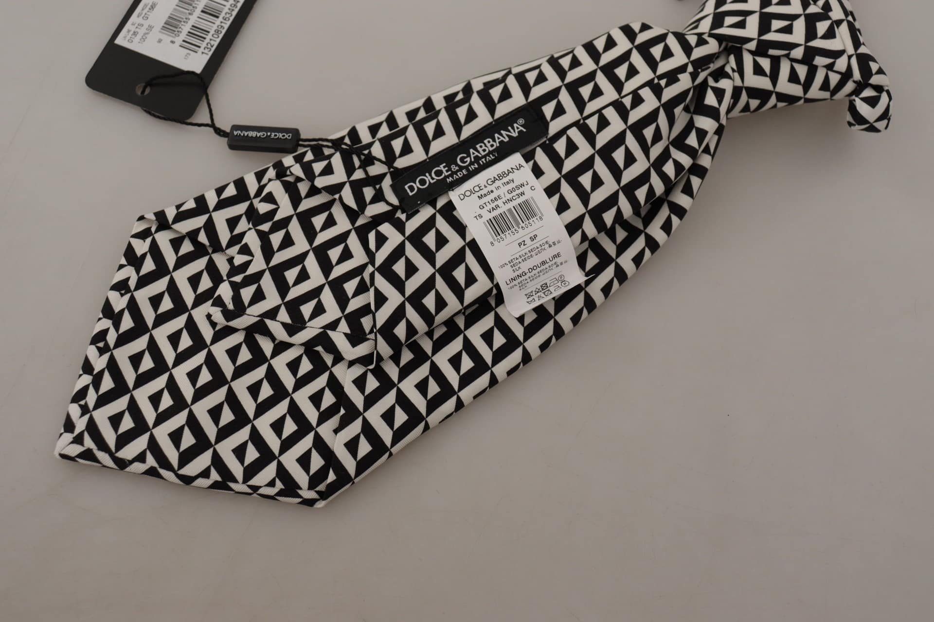 Dolce & Gabbana Black White Geometric 100% Silk Adjustable Accessory Tie