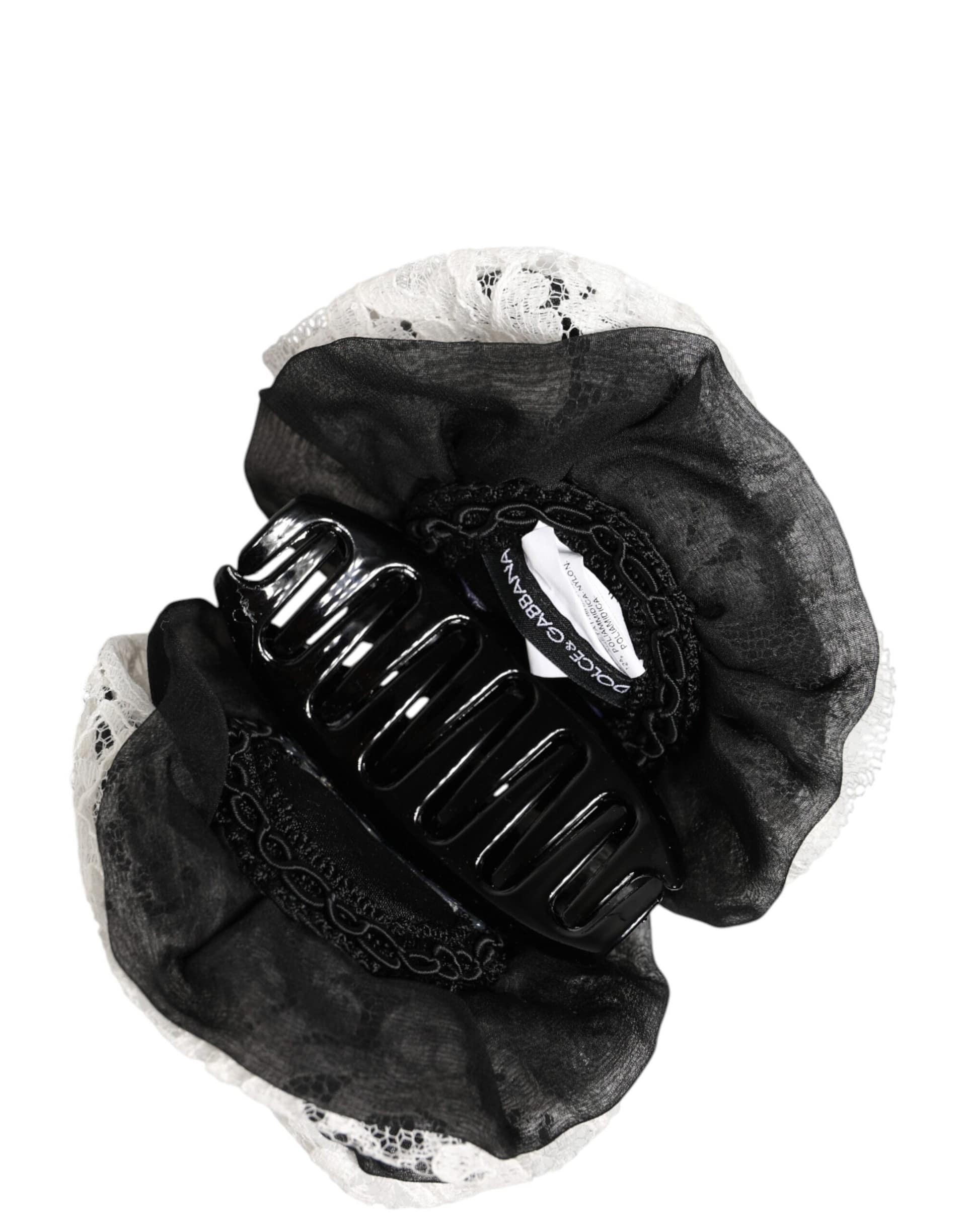 Dolce & Gabbana Black White Silk Floral Lace Crystal Accessory Hair Claw