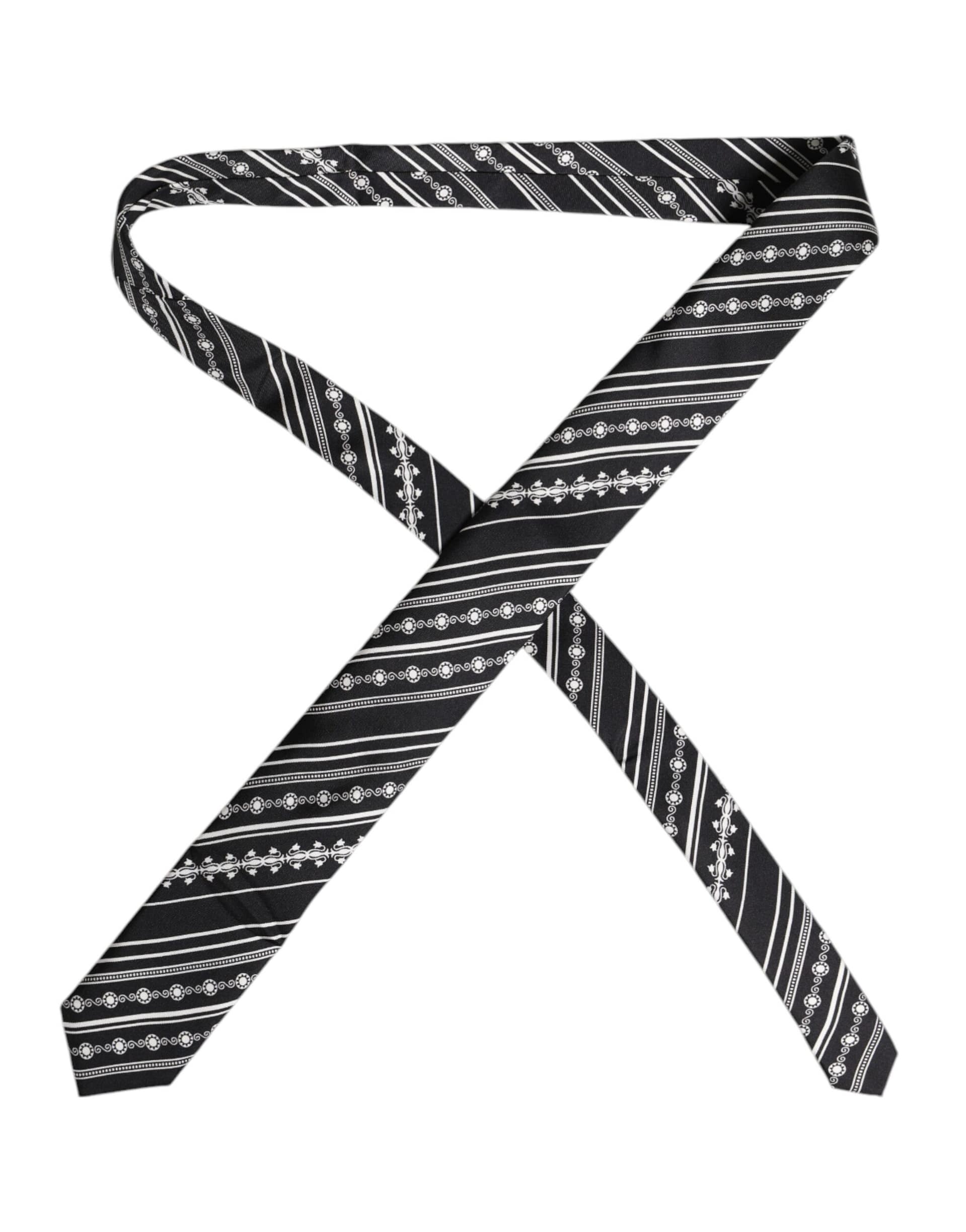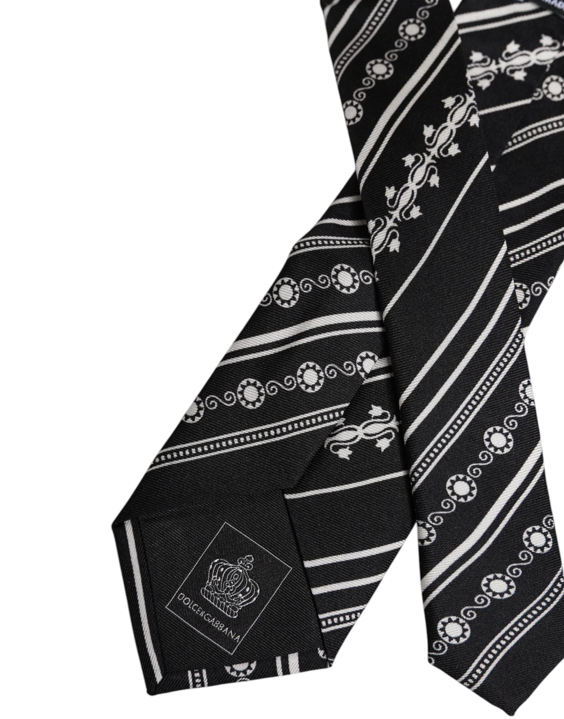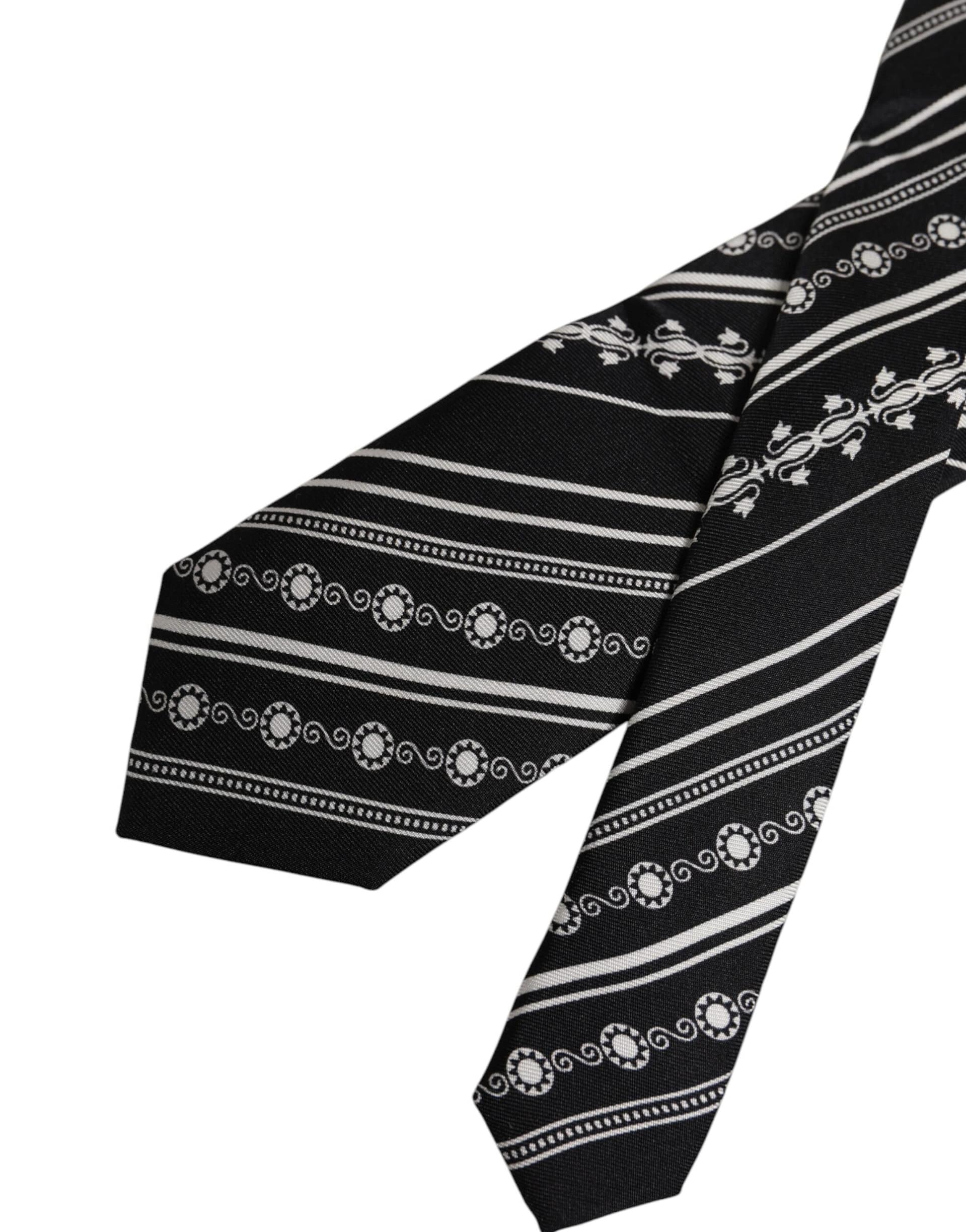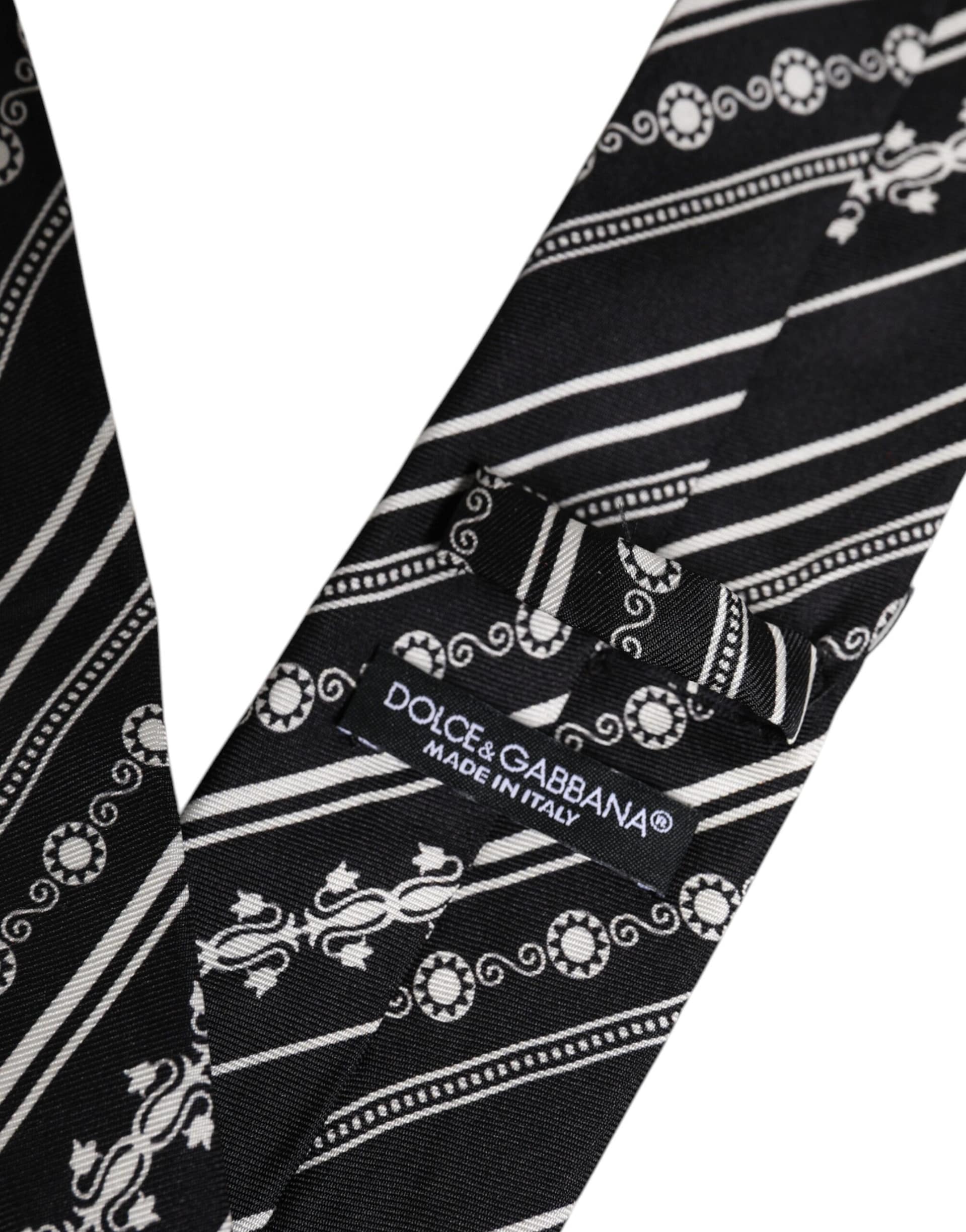 Dolce & Gabbana Black White Stripes Silk Adjustable Necktie Tie
