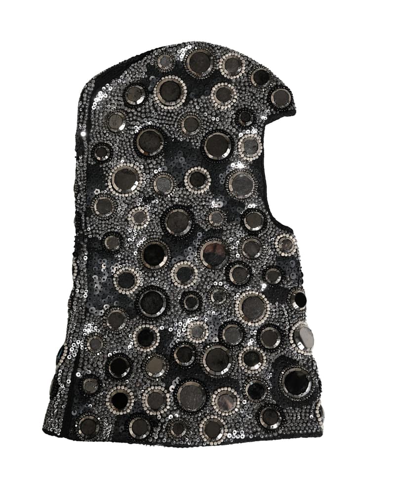 balaclava is crafted in sleek black and adorned with sparkling crystal embellishments. Designed for both warmth and statement style, it offers a bold, fashion-forward look perfect for winter occasions or standout streetwear ensembles.