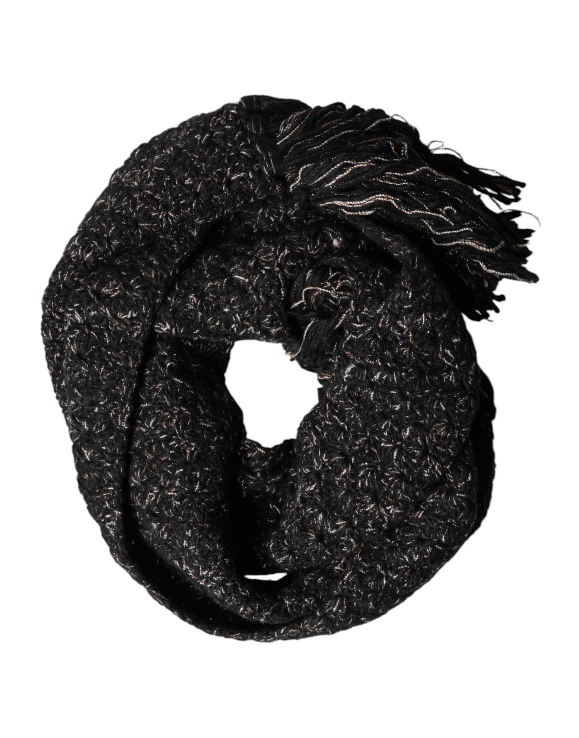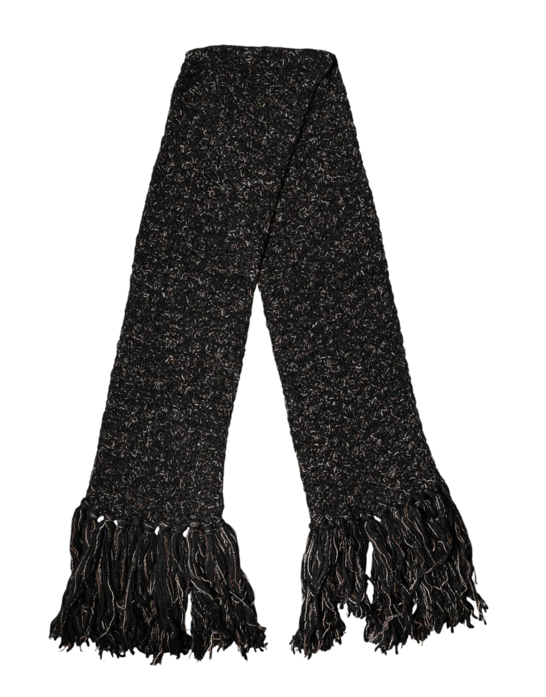 Dolce & Gabbana Black Wool Fringes Neck Wrap Foulard Scarf