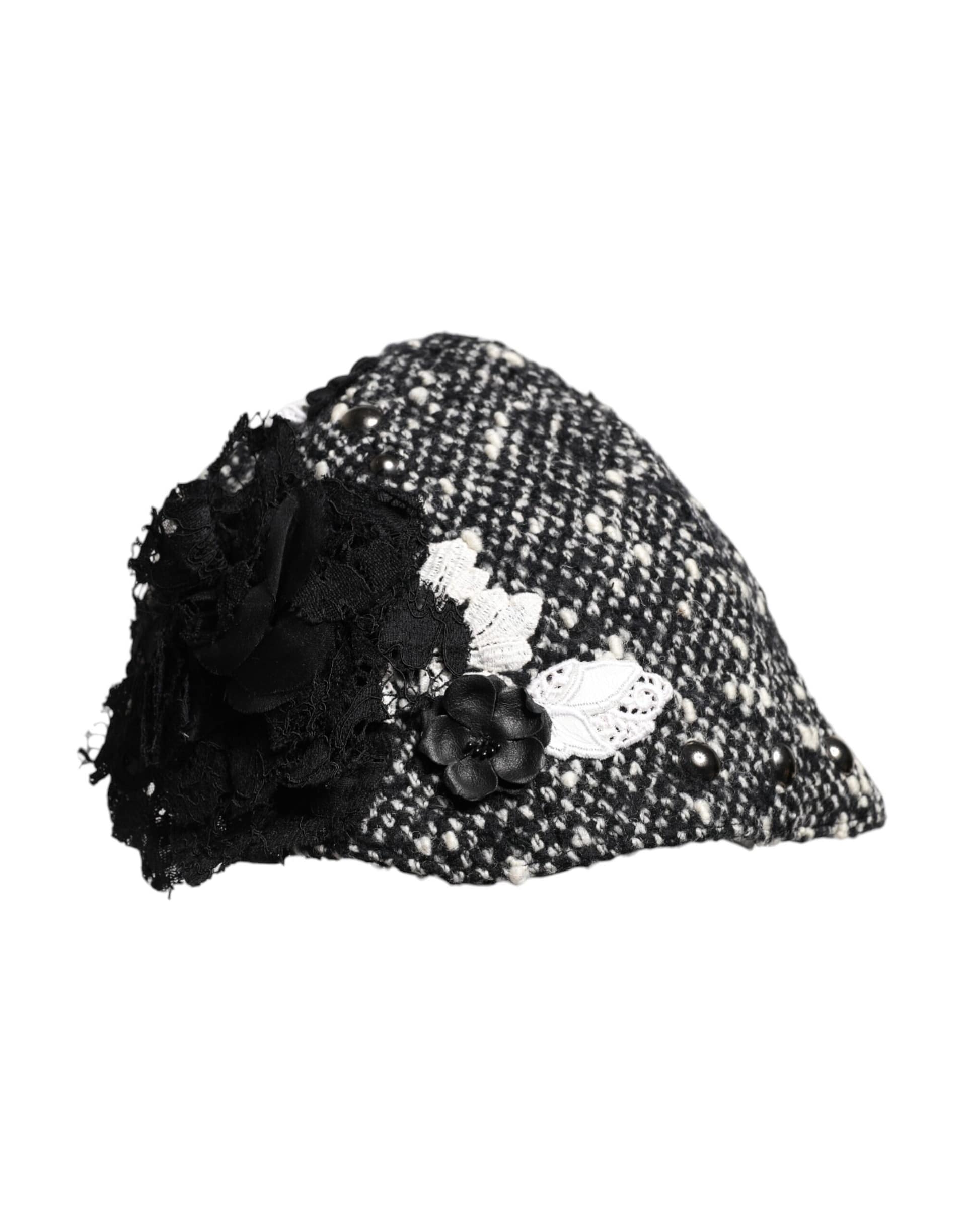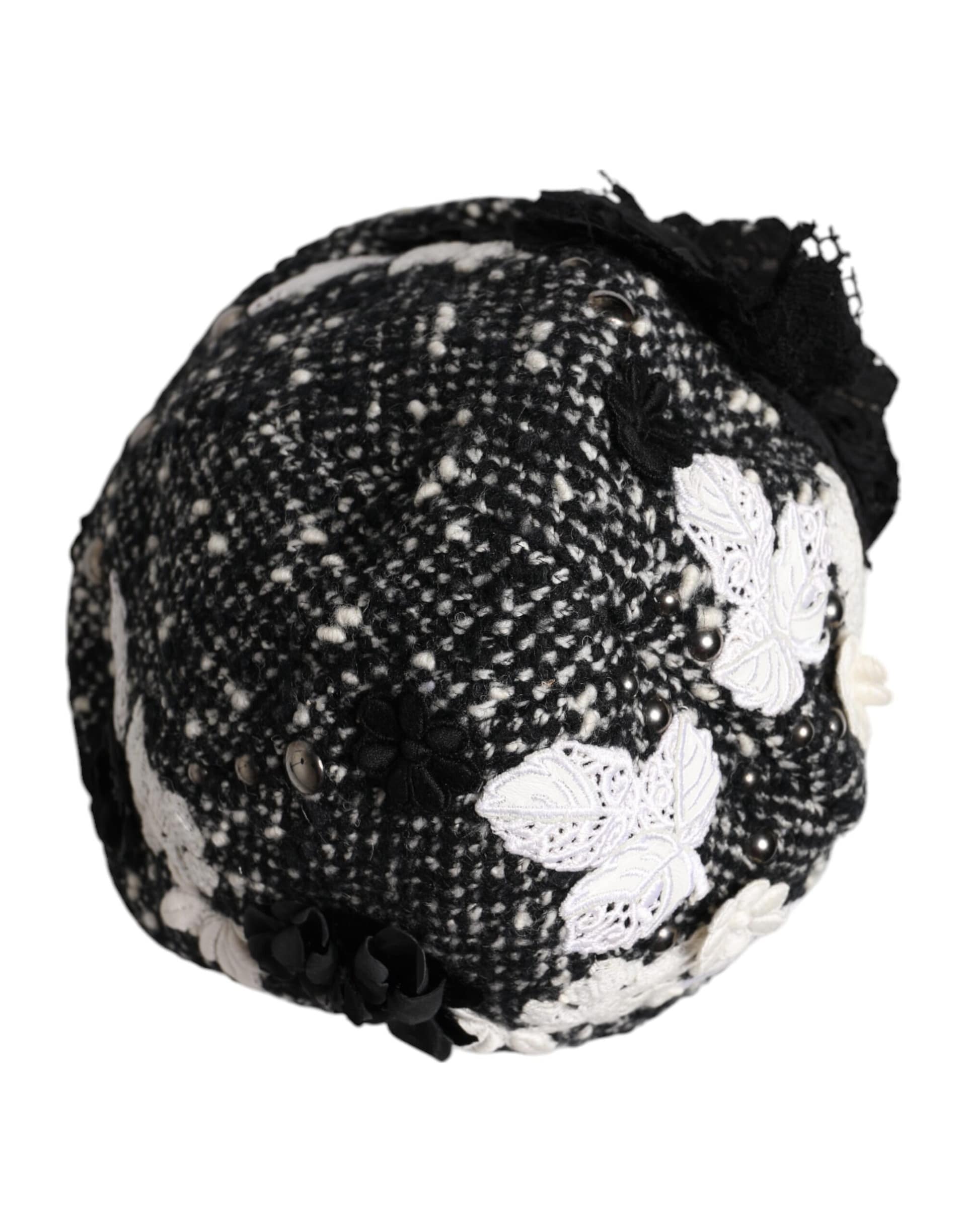 Dolce & Gabbana Black Wool White Floral Embellished Cloche Hat