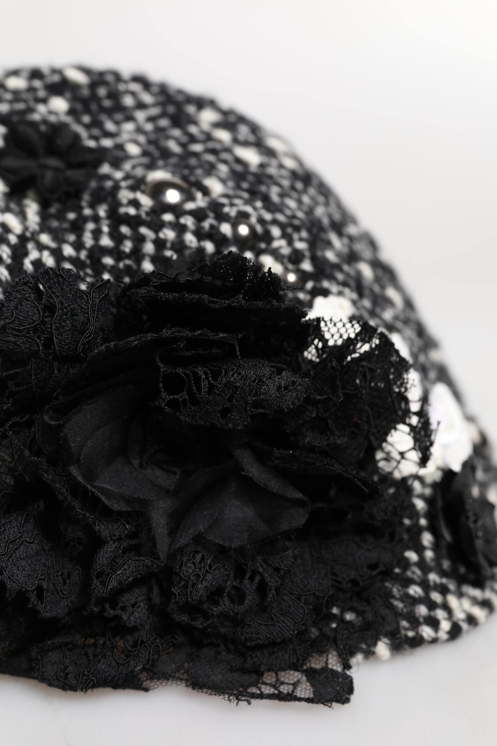 Dolce & Gabbana Black Wool White Floral Embellished Cloche Hat