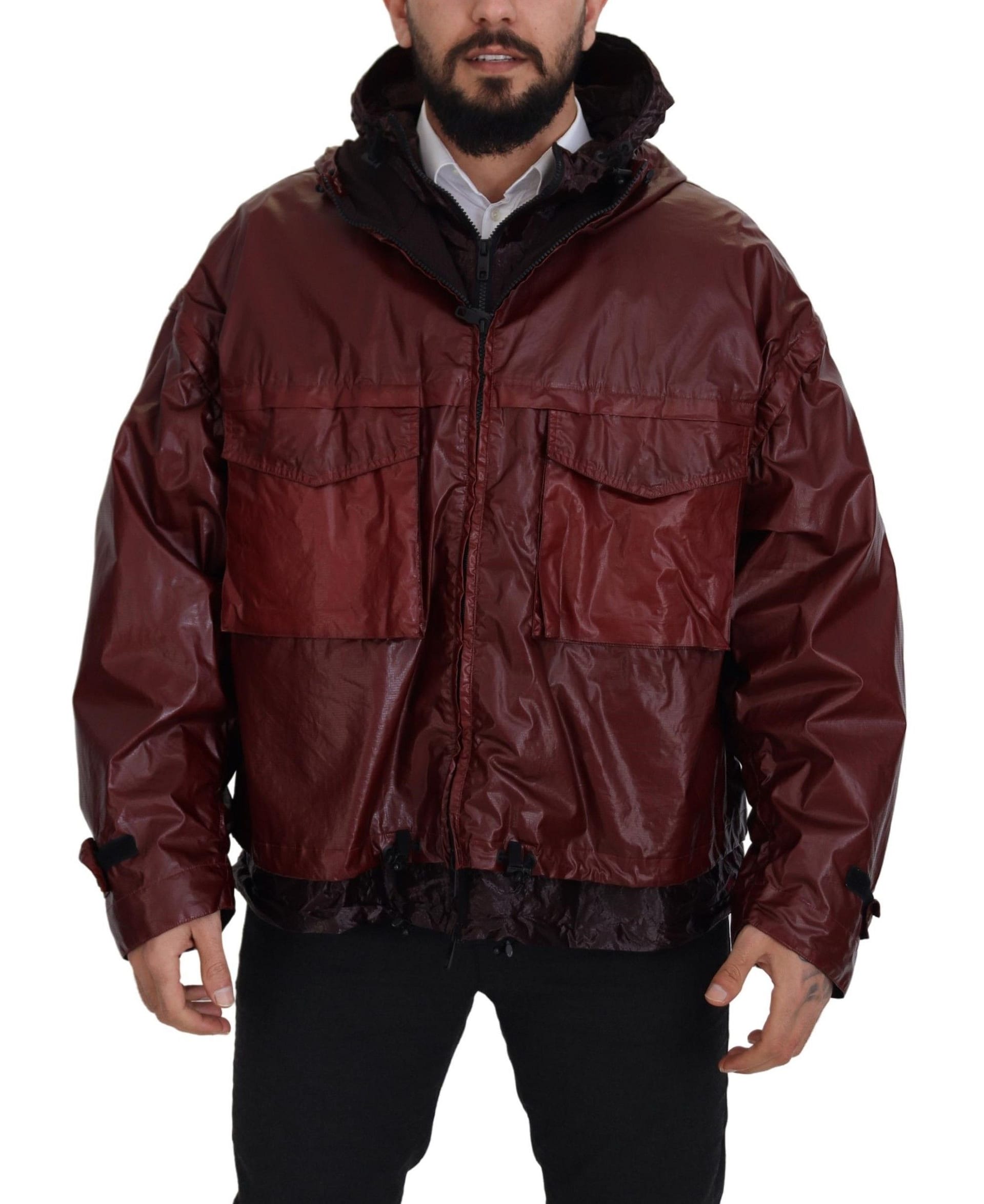 Dolce & Gabbana Bordeaux Nylon Collared Men Coat Jacket