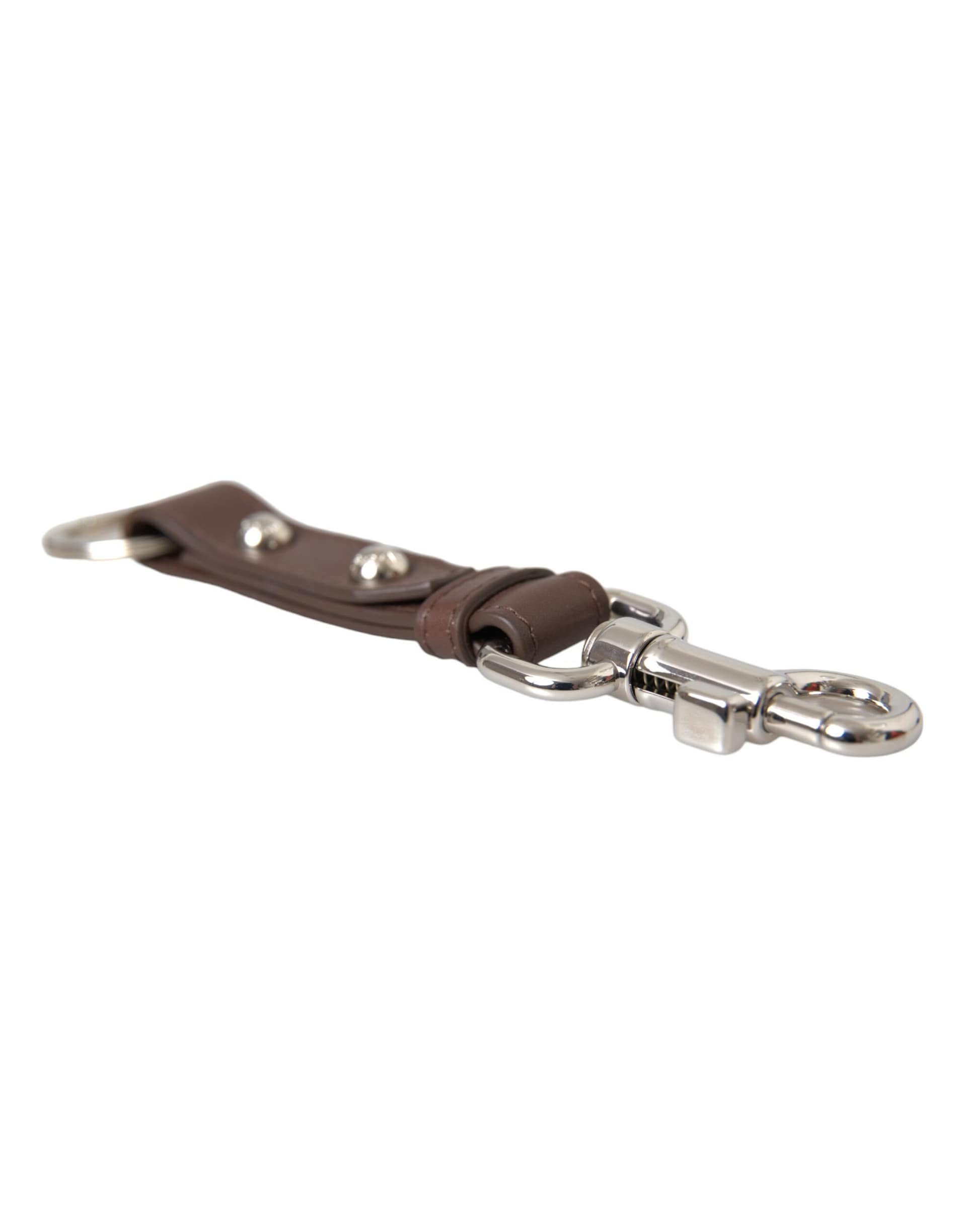 Dolce & Gabbana Brown Plain Leather Silver Brass Keyring Holder Keychain