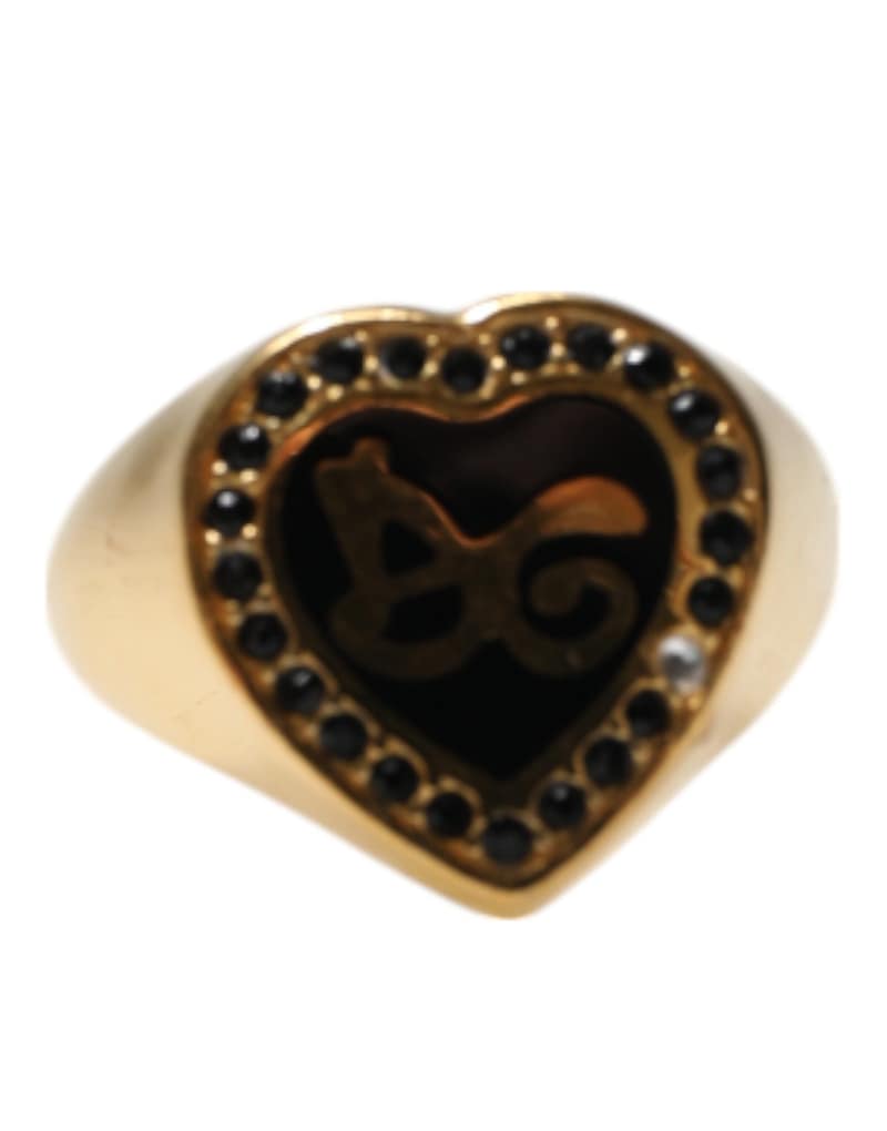 Dolce & Gabbana Gold Brass Crystal DG Logo Heart Women Ring
