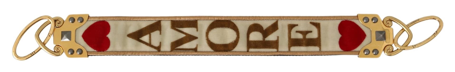 Dolce & Gabbana Gold White Textile Leather AMORE Shoulder Strap