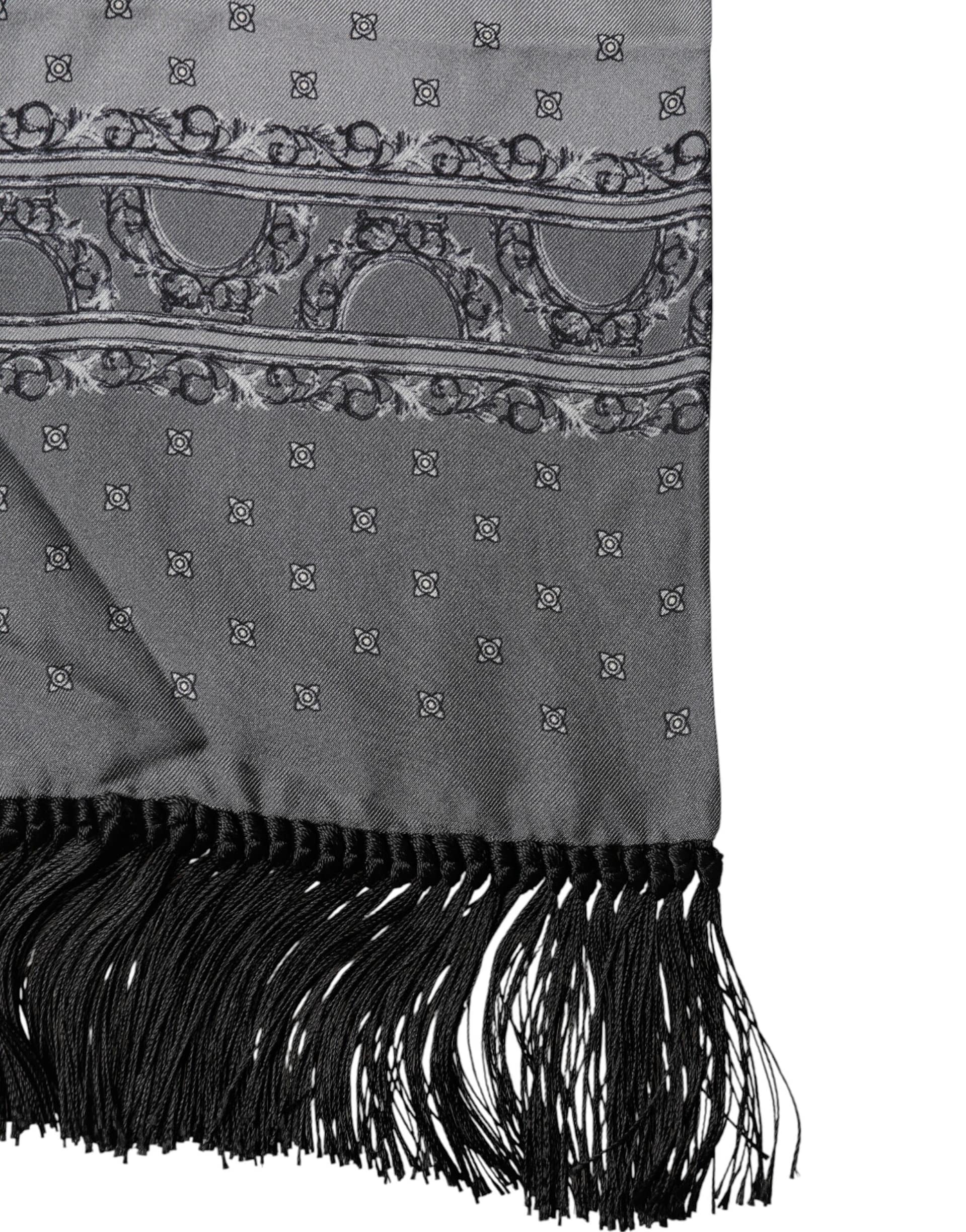 Dolce & Gabbana Gray Patterned Fringes Neck Foulard Scarf