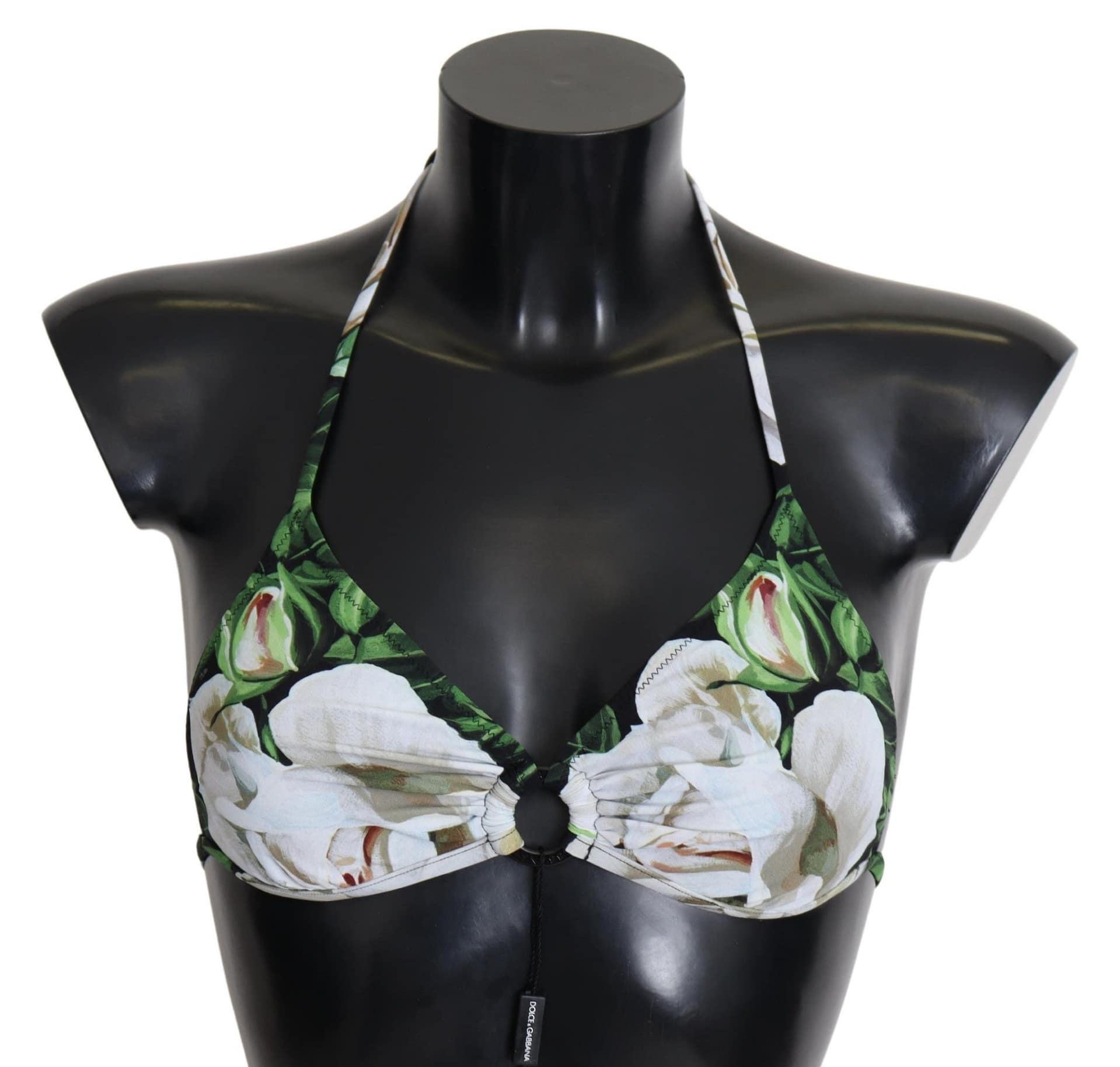 Gorgeous brand new with tags, 100% Authentic Dolce & Gabbana bikini top with floral print made of lightweight elastic material. Fastened at the back with a decorative logo-embossed closure, tie fastening at the neck.