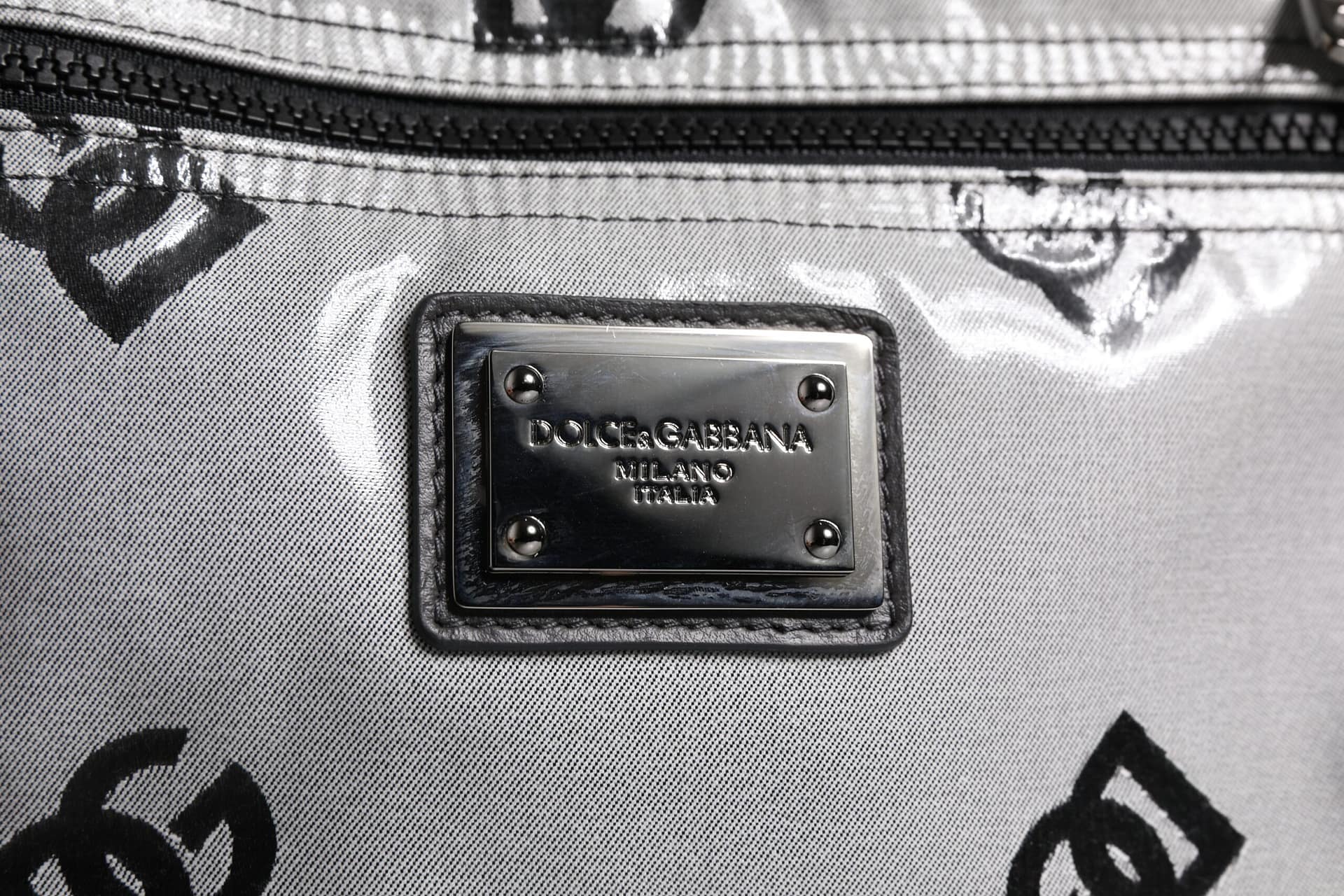 Dolce & Gabbana Polyester Gray Black DG Logo Plaque Backpack Bag