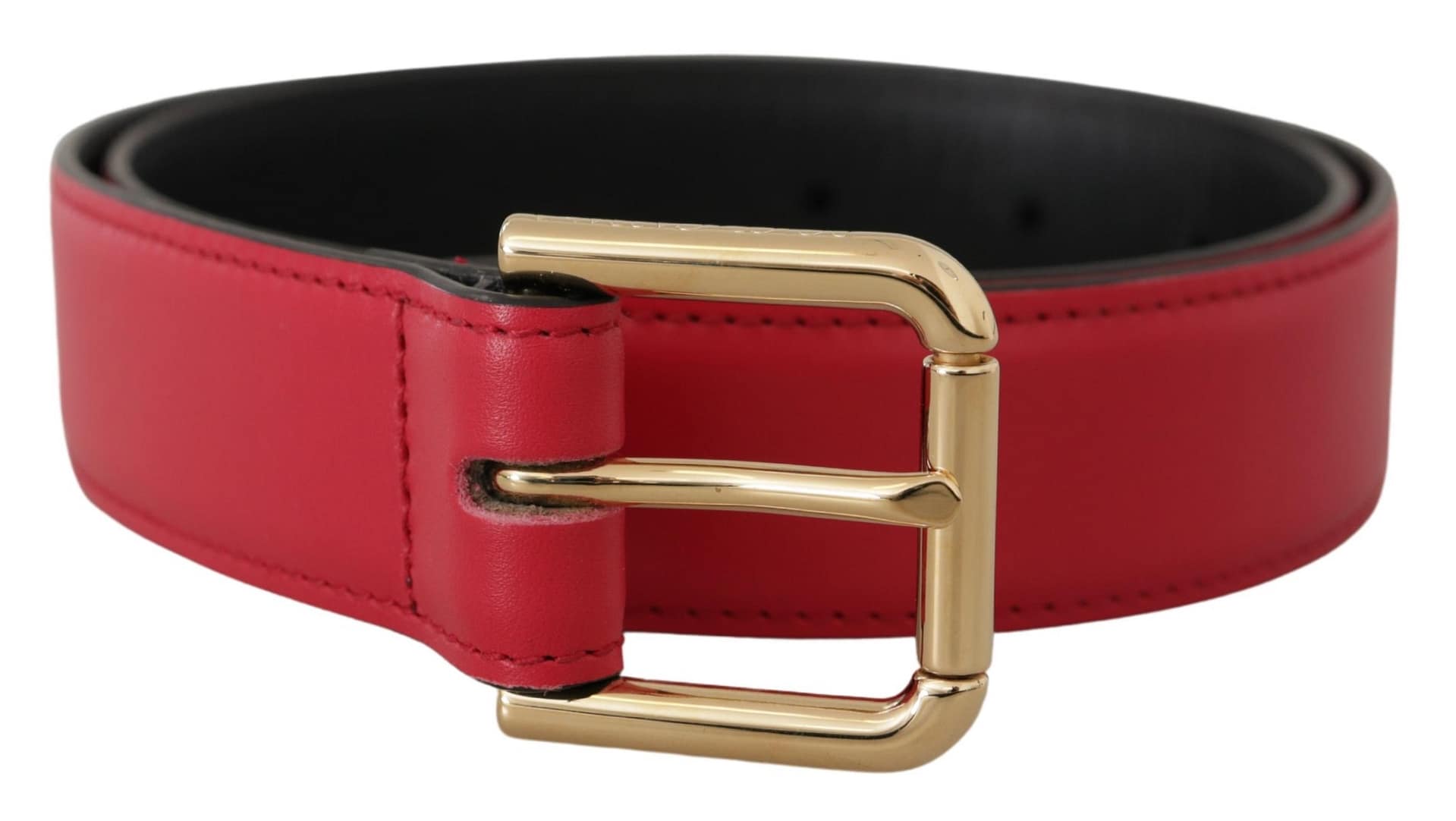 Dolce & Gabbana Red Calf Leather Gold Tone Logo Metal Buckle Belt