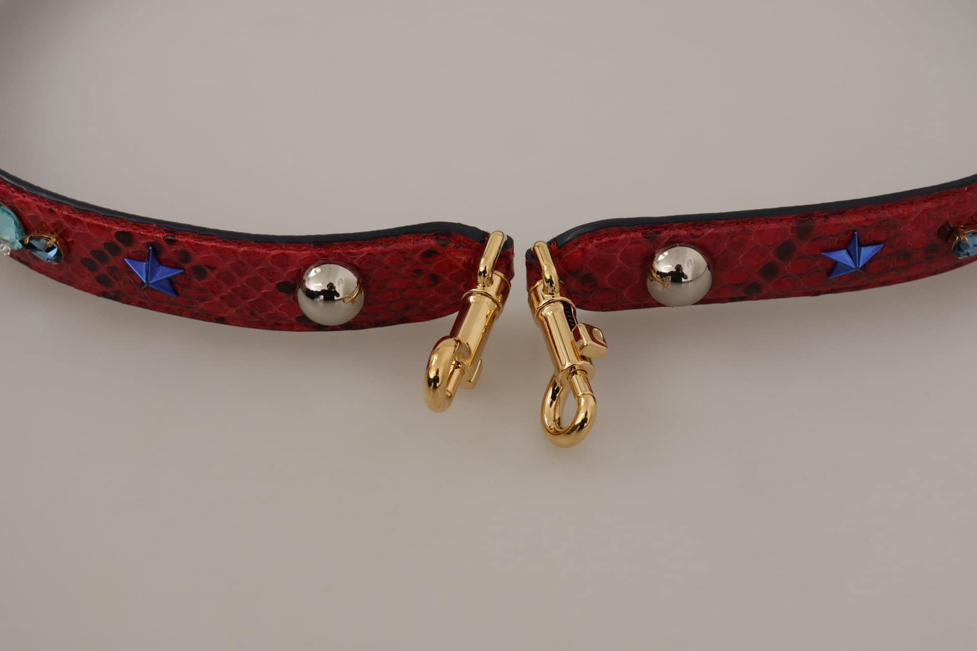 Dolce & Gabbana Red Exotic Leather Crystals Shoulder Strap