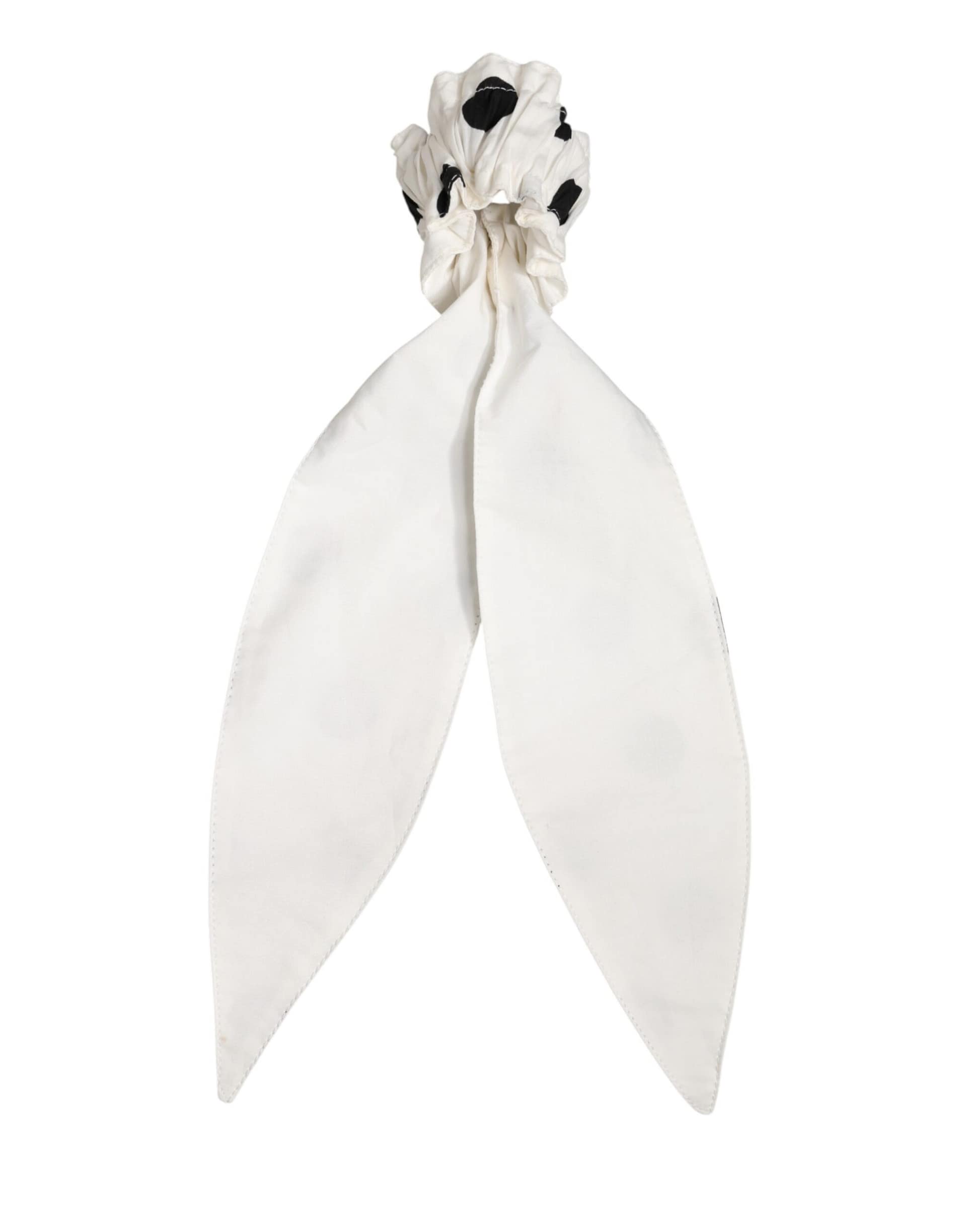 white cotton scrunchie, designed with classic polka dots and an attached scarf tie. Feminine and timeless, it effortlessly elevates ponytails, buns, or wrist styling with iconic Italian charm. Perfect for elegant everyday looks or stylish summer ensembles.